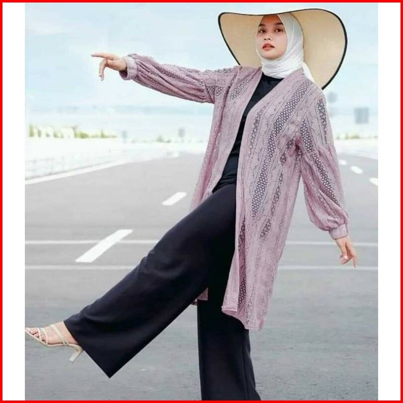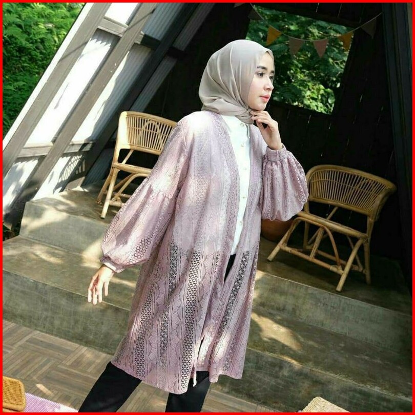 Promo Long Cardi Brukat - Kardigan Brukat Jumbo - Outer Brukat Wanita Terlaris