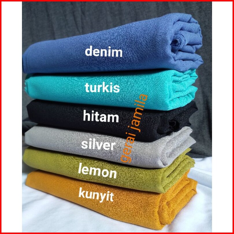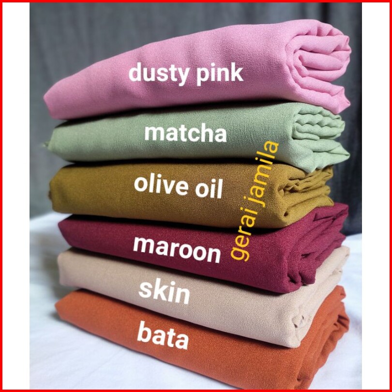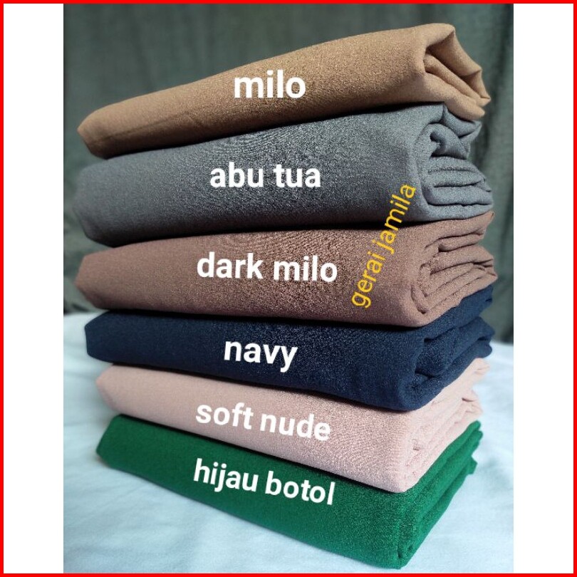Maroon, Hitam, Navy, Abu tua, Silver, Army, Dustypink, Lemon, Milo, Hijau botol, Kunyit, Bata, Mocca/skin, Dark milo, Denim, Dark grey, Dark purple, Hijau army, Peach, Putih, Avocado/matcha, Grey/abu sedang