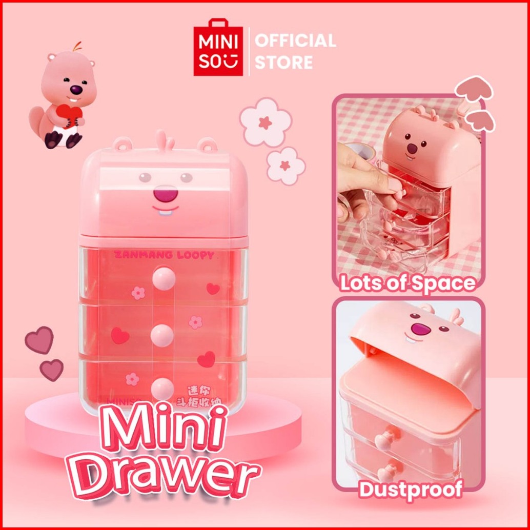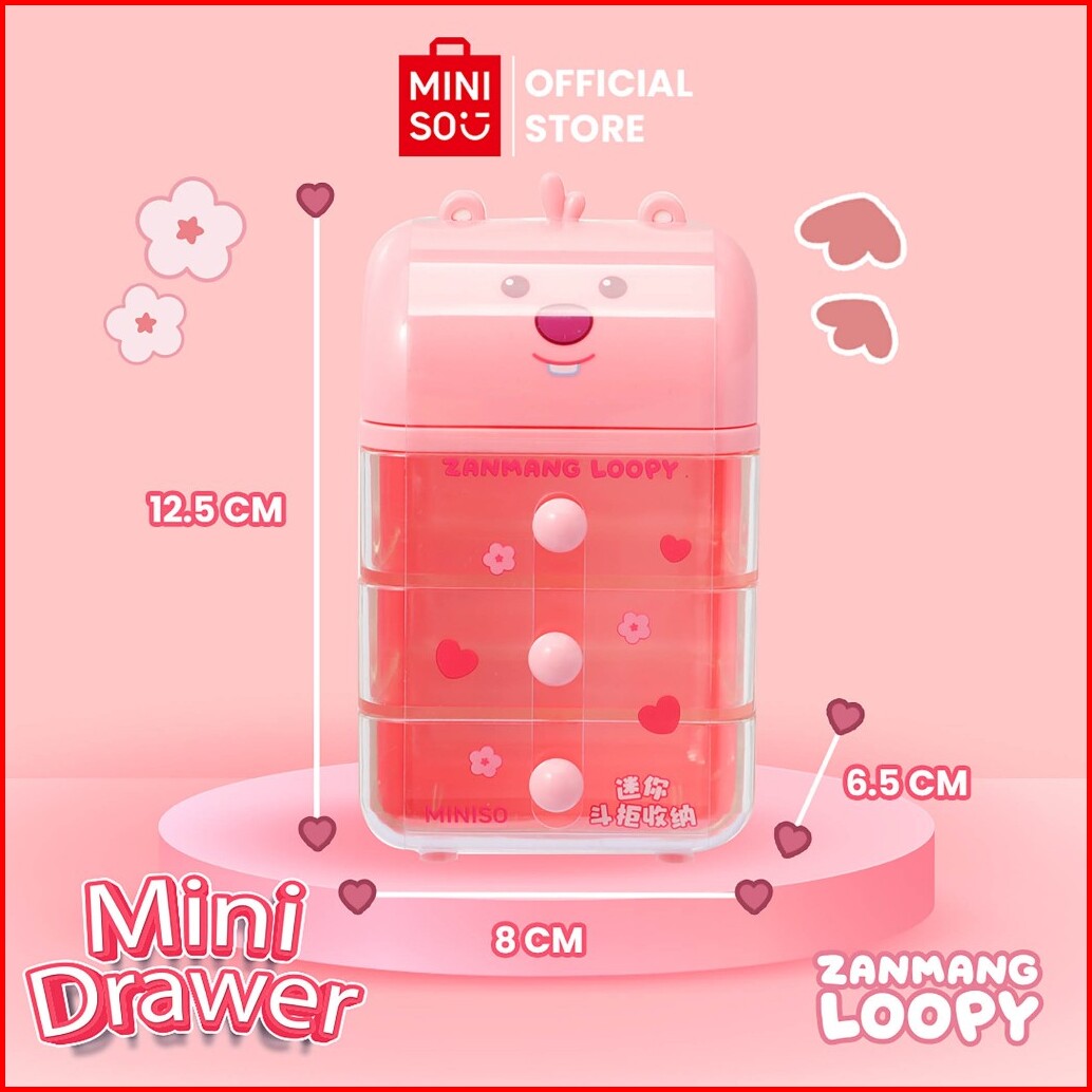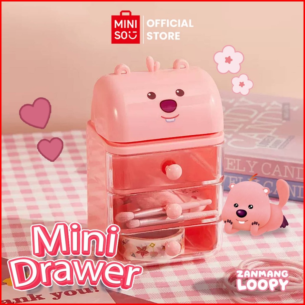Miniso X Zanmang Loopy Collection Mini Kotak Penyimpanan Desktop Organizer Lemari Penyimpanan Lipstik Laci Tahan Debu