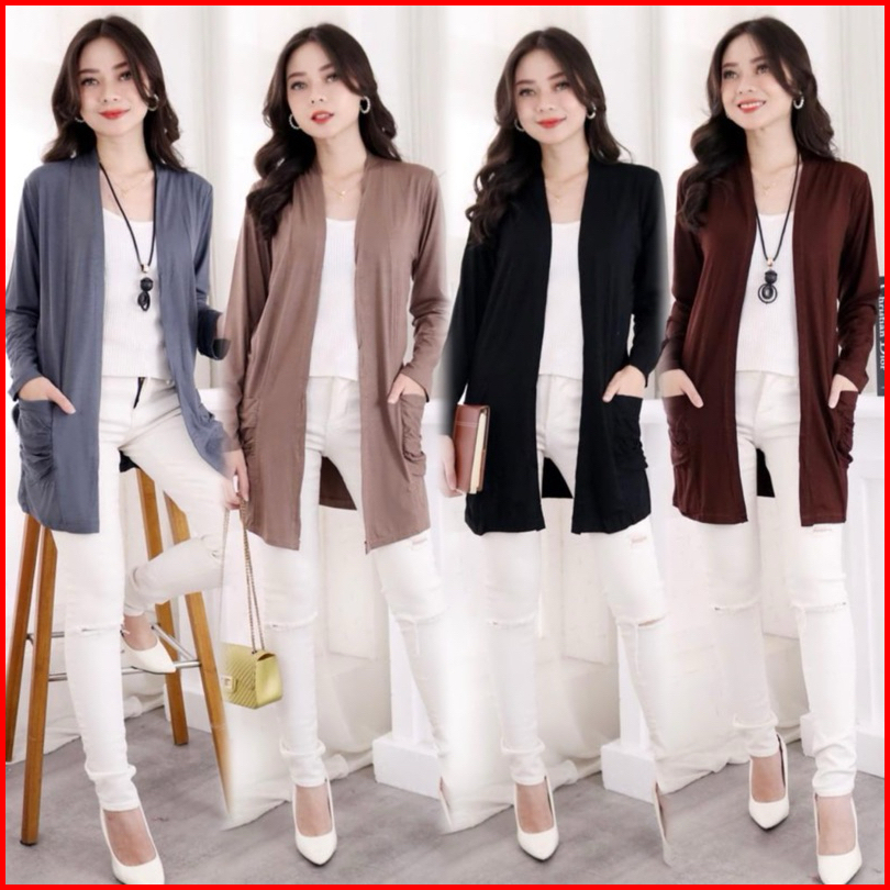 Cardigan Outerwear Casual Polos Wanita Rayon Spandek Best Seller