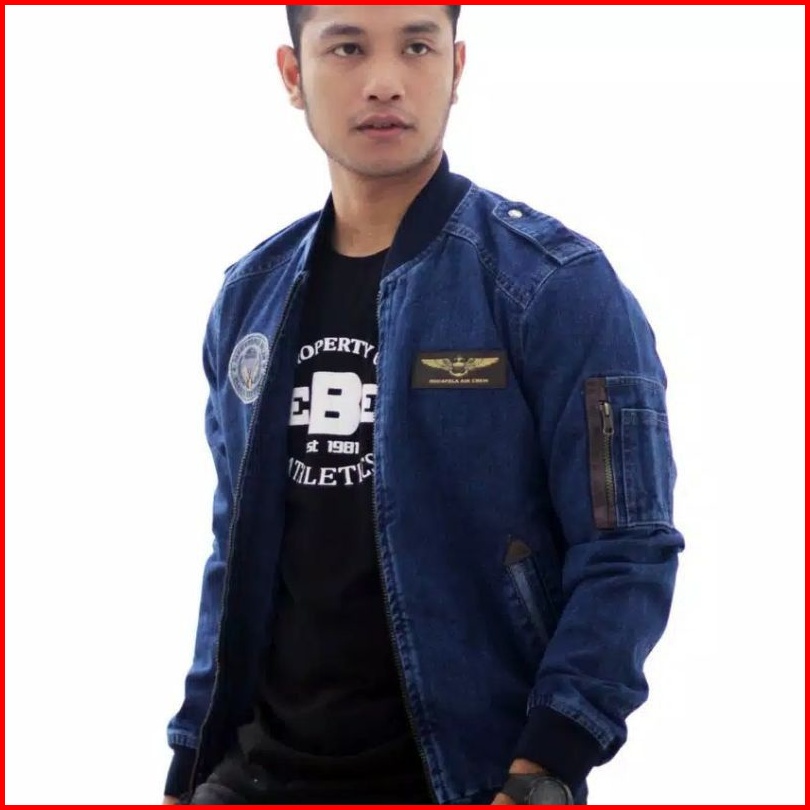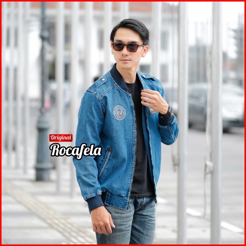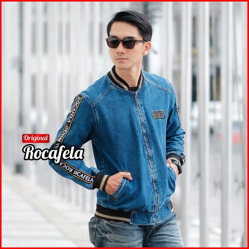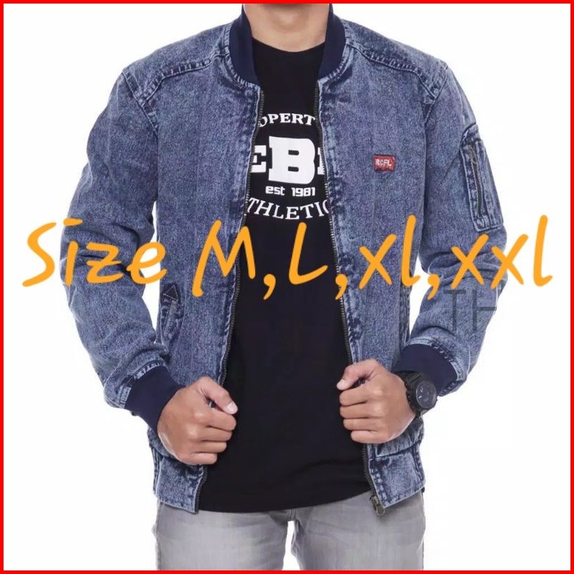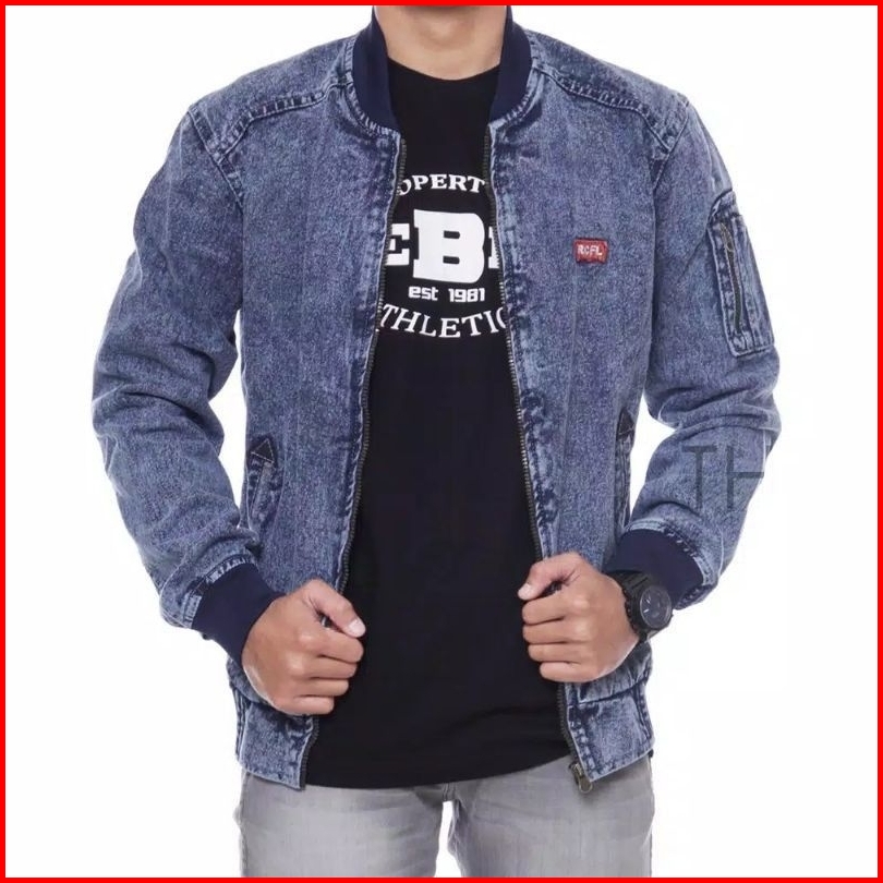 Hot Product Jaket Jeans Pria Cowok Senwash Blue Sandwash Bomber Denim Rcfl Rocafela Original The Berry