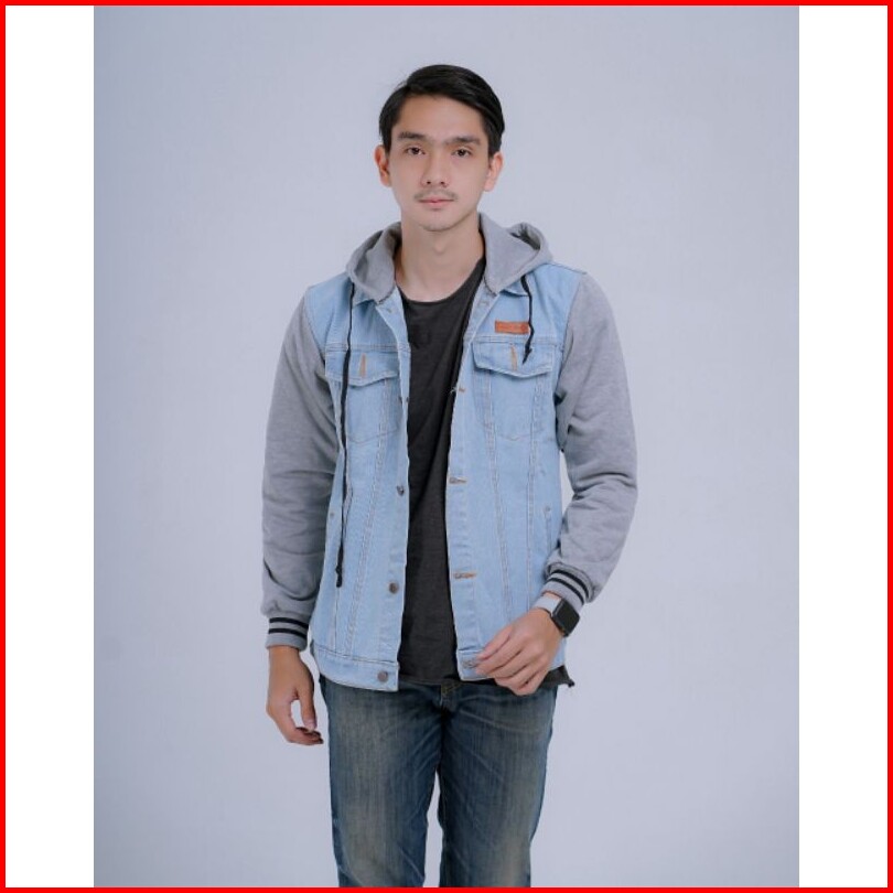 Tans - Jacket Jeans Denim Reglan Pria Jaket Jeans Boy Hoodie Kombinasi Fleece Big Size M L Xl Xxl