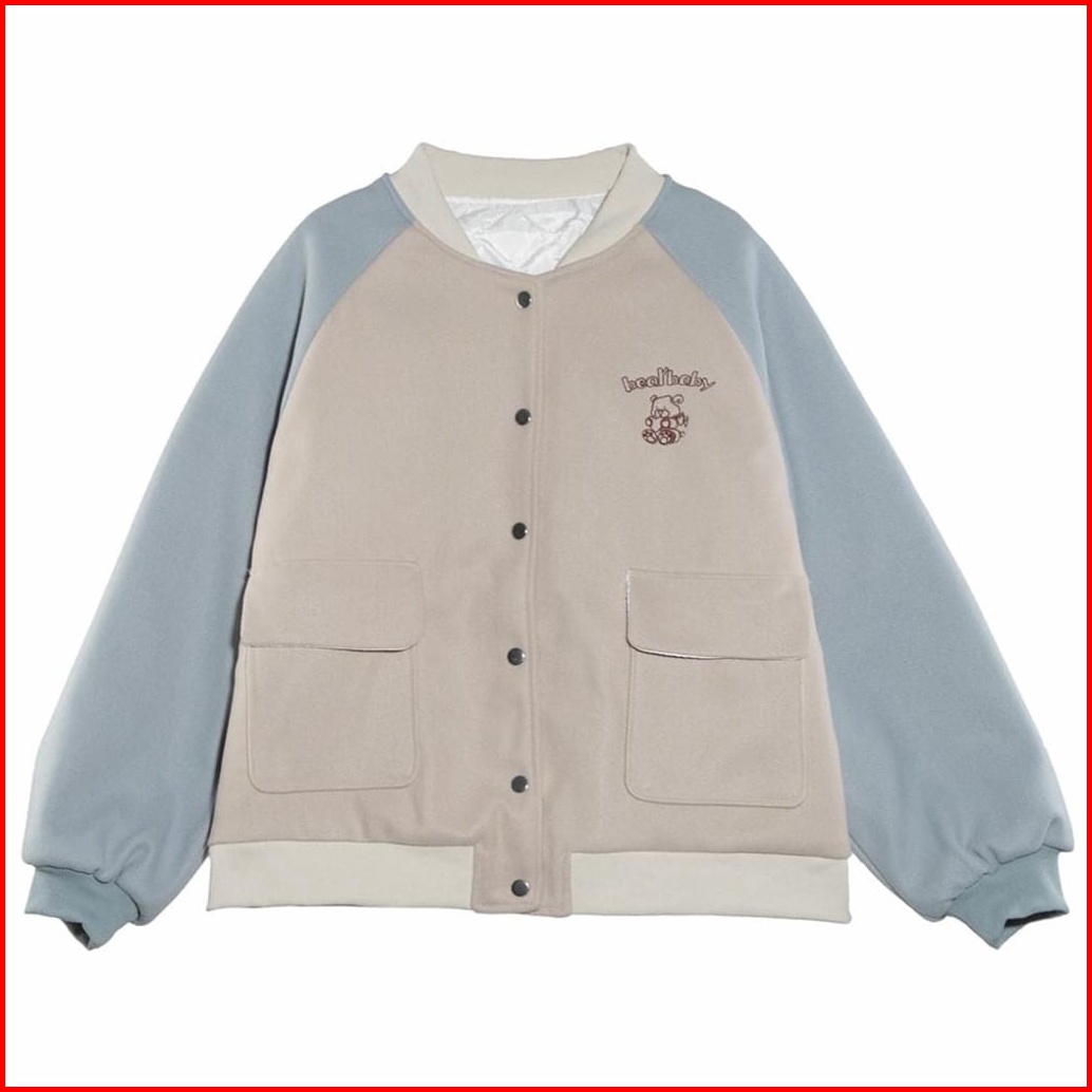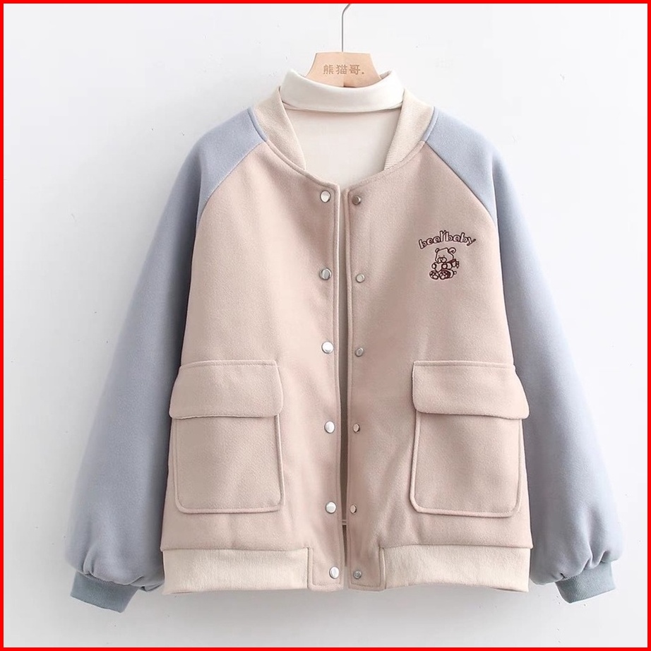 Jaket Wanita Baby Bear Baseball Oversize Jaket Baseball Varsity Wanita Korean Style