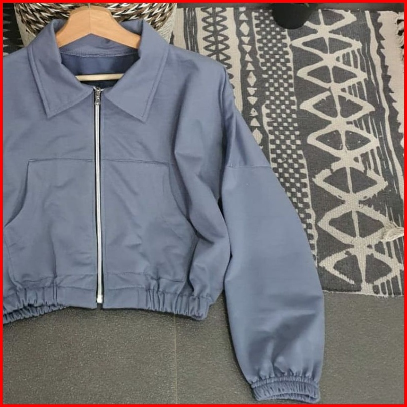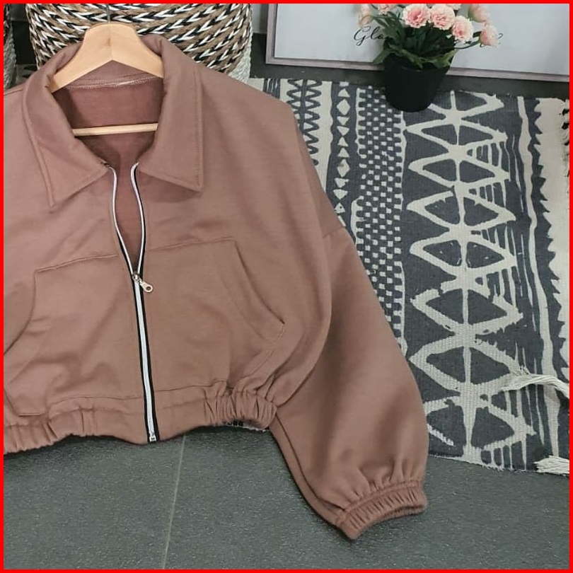 Vada Colar Jacket Wanita Crewneck Sleting Oversize Bahan Fleece
