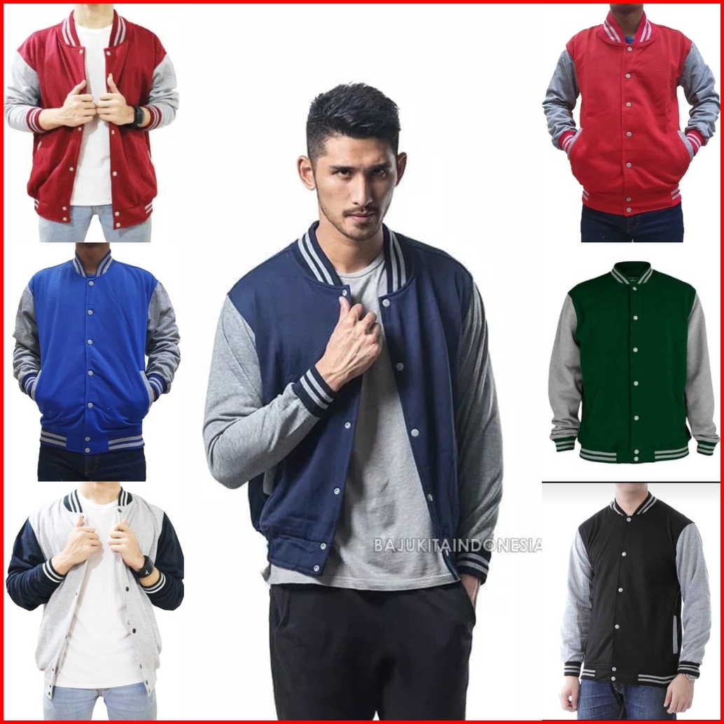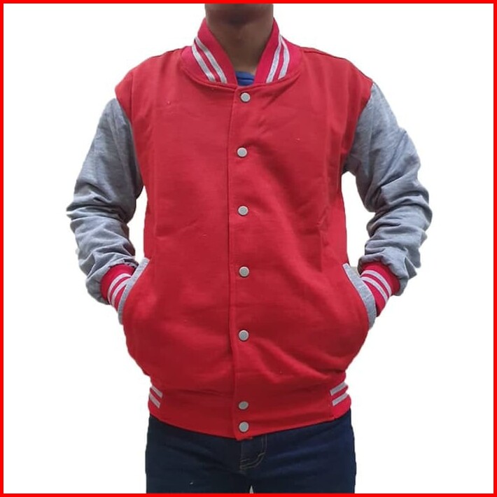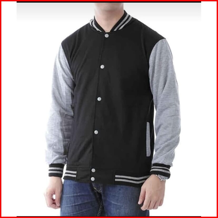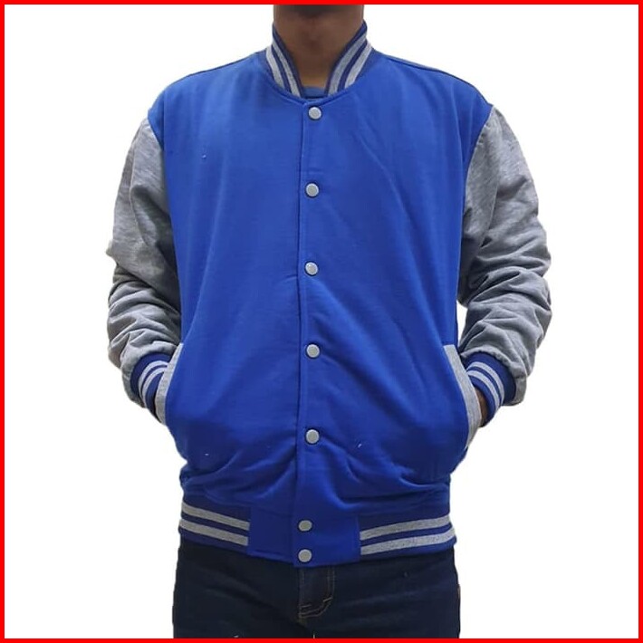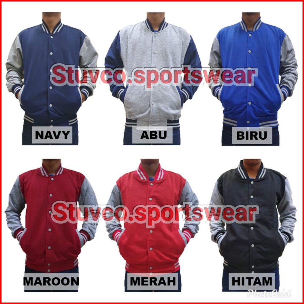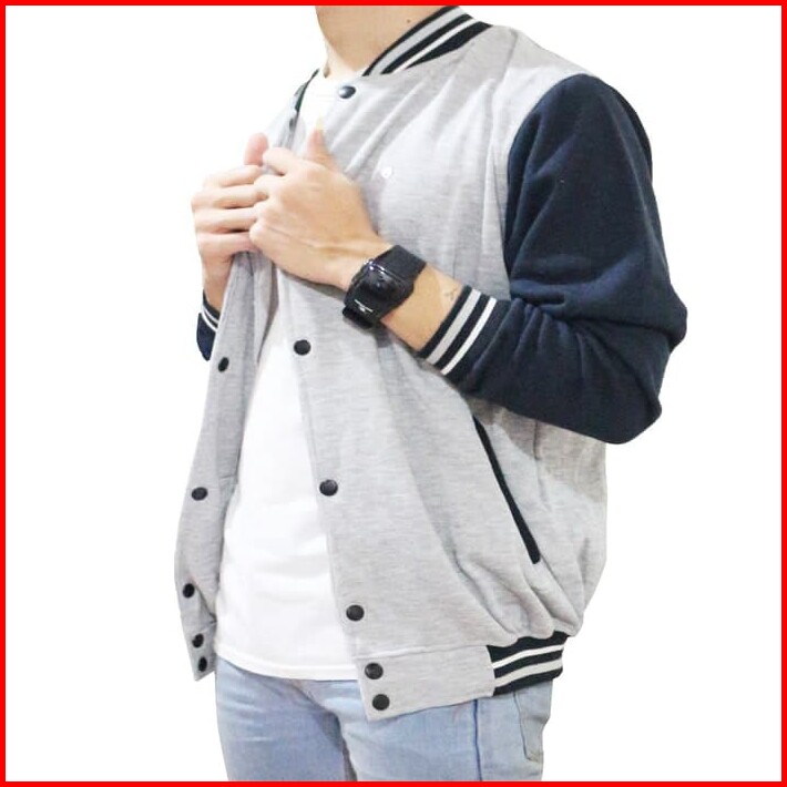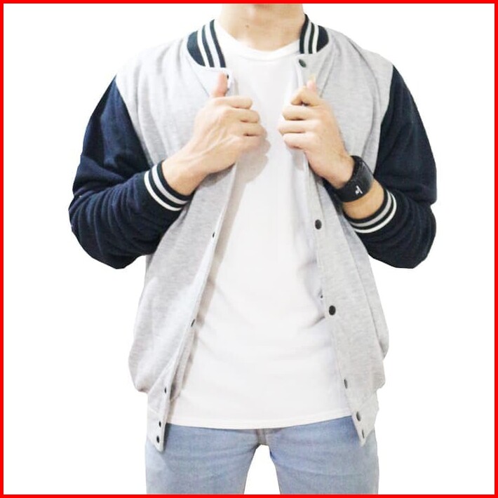 Jaket Polos Baseball Varsity Abu Misty List Navy Sweater Pria Wanita Fashion Murah Bandung Keren