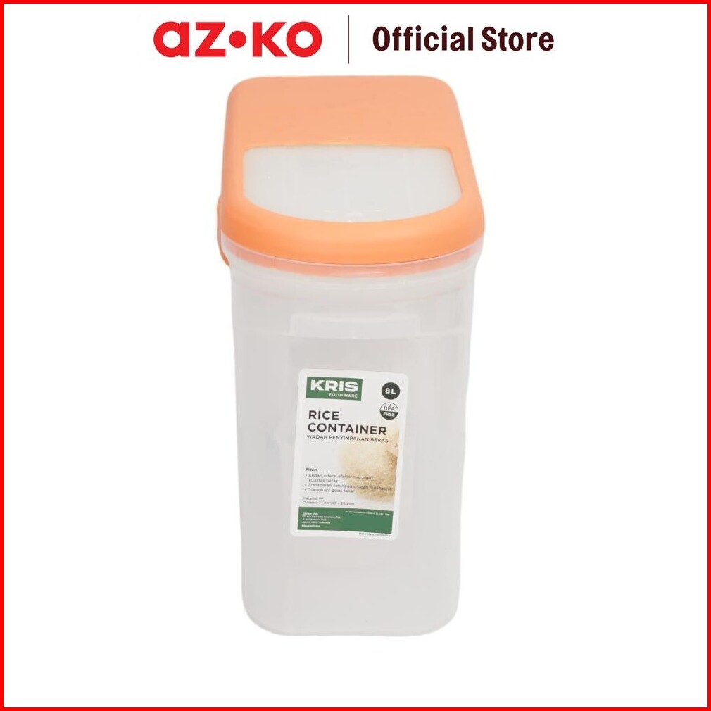 Azko Kris 8 Ltr Basica Tempat Beras Rice Container Food Grade Kotak Beras Wadah Penyimpanan Beras Perlengkapan Dapur
