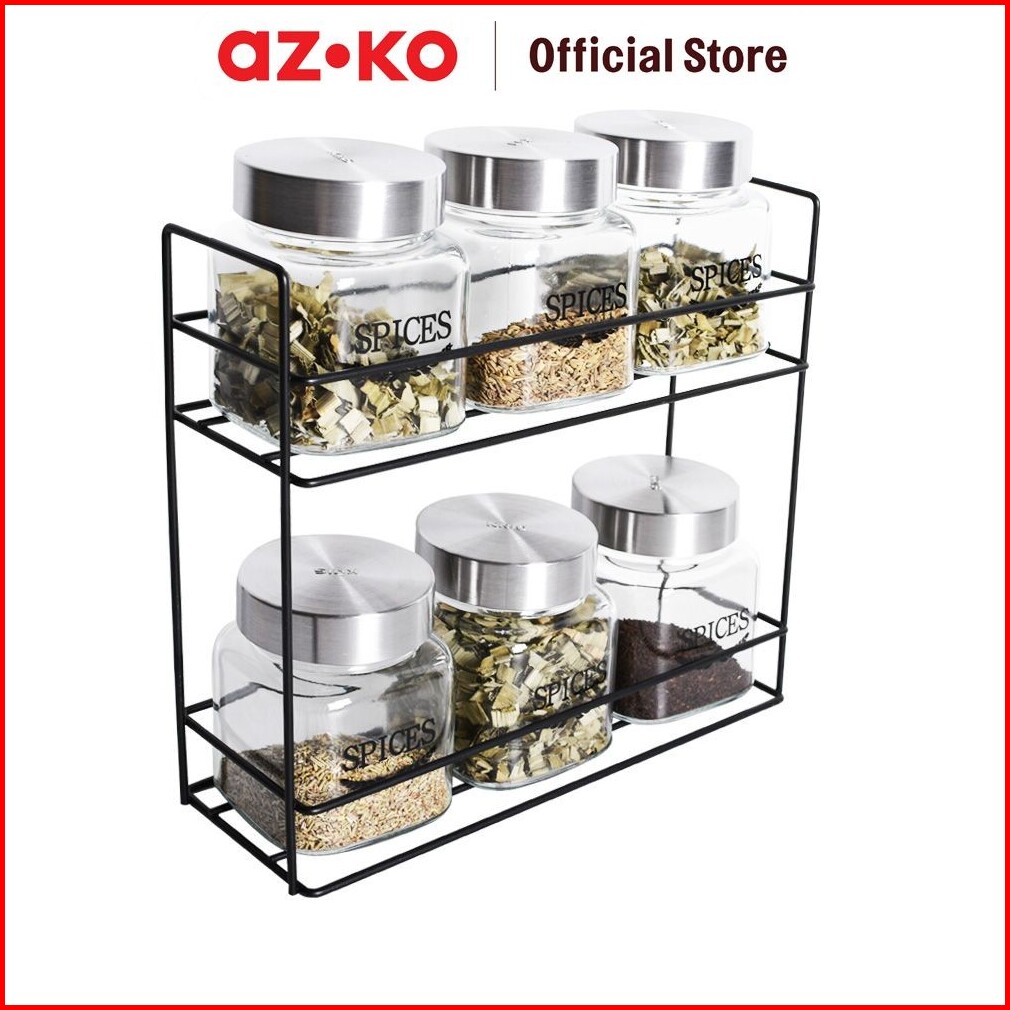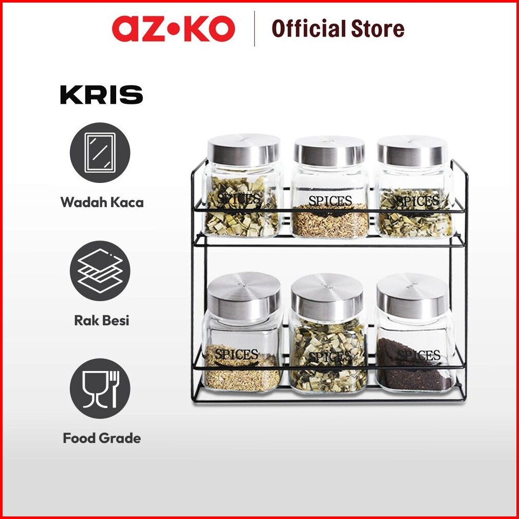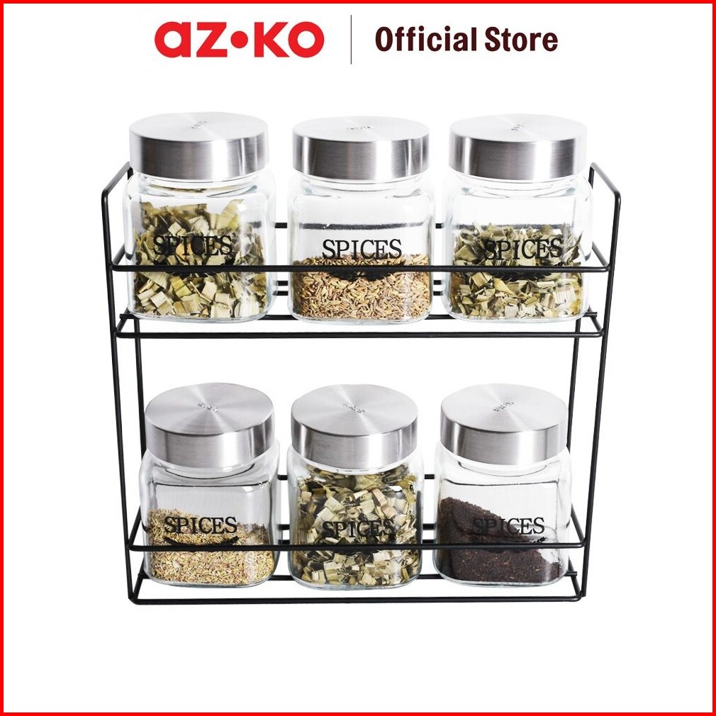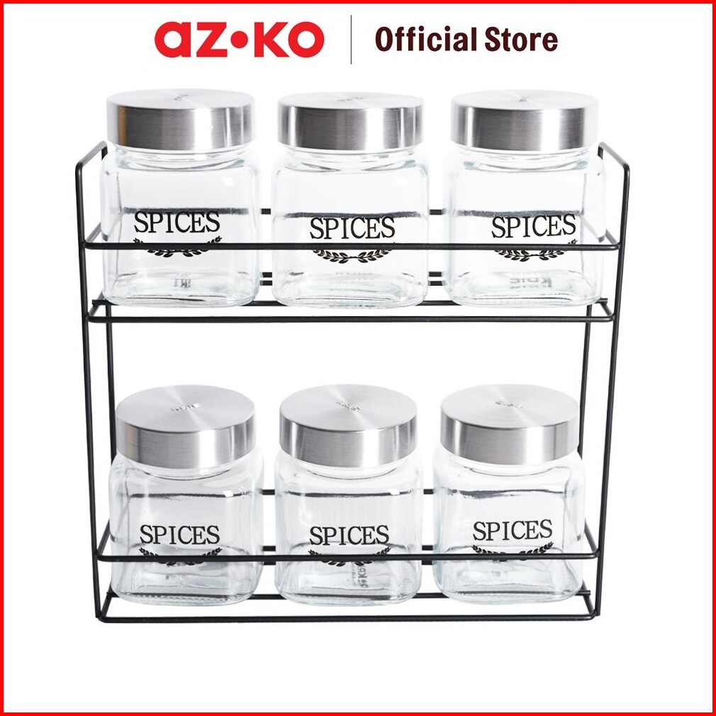 Azko Kris 240 Ml Set 7 Pcs Stoples Bumbu Dengan Rak Jar Tempat Simpan Snack Dan Permen Setoples Toples Serbaguna Perleng