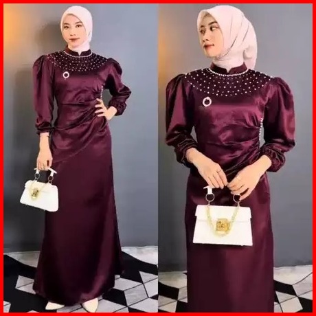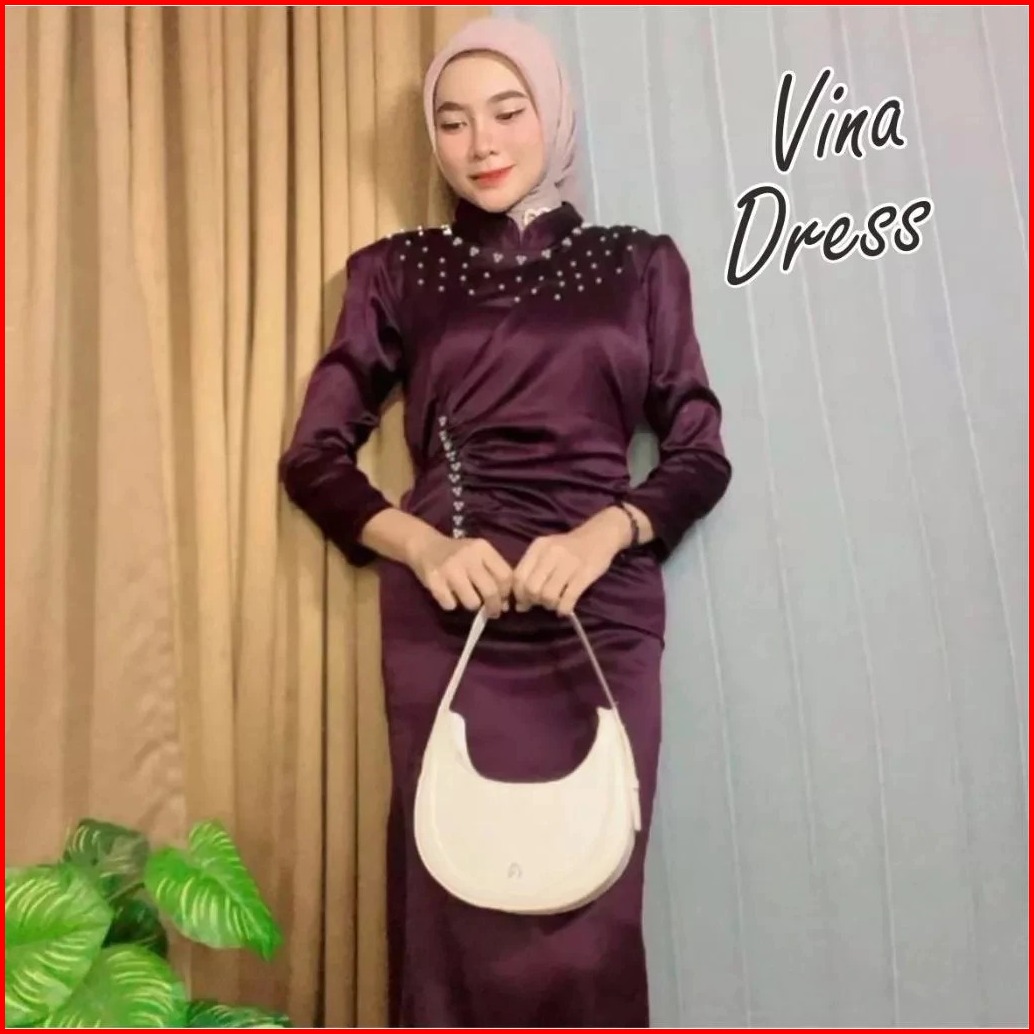 Vina Dress Spesial Burgundy Gaun Pesta Kondangan Viral Duyung Baju Wanita Kekinian Bridesmaid