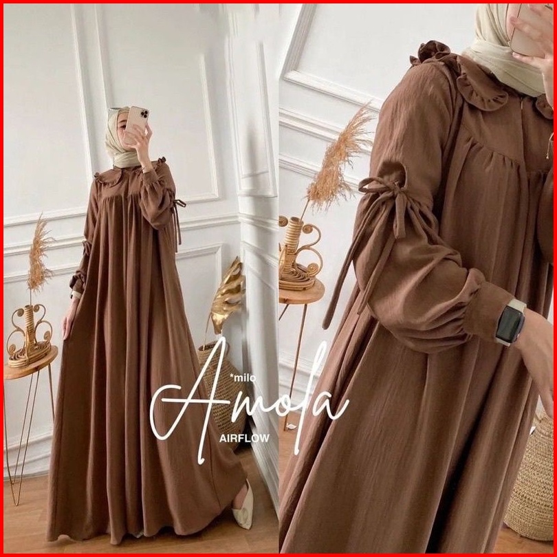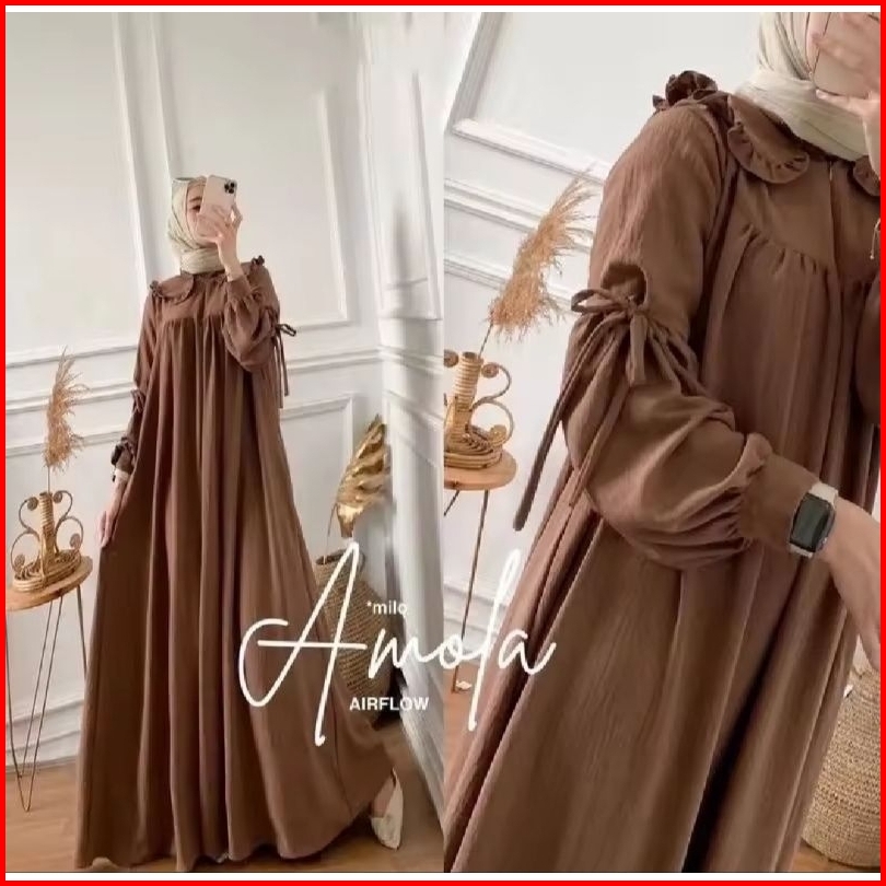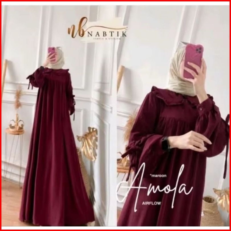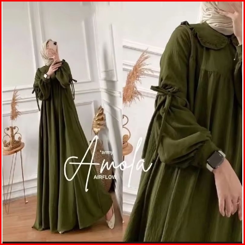 Amola Dres Crinkle Airflow Gamis Polos Busui Terbaru