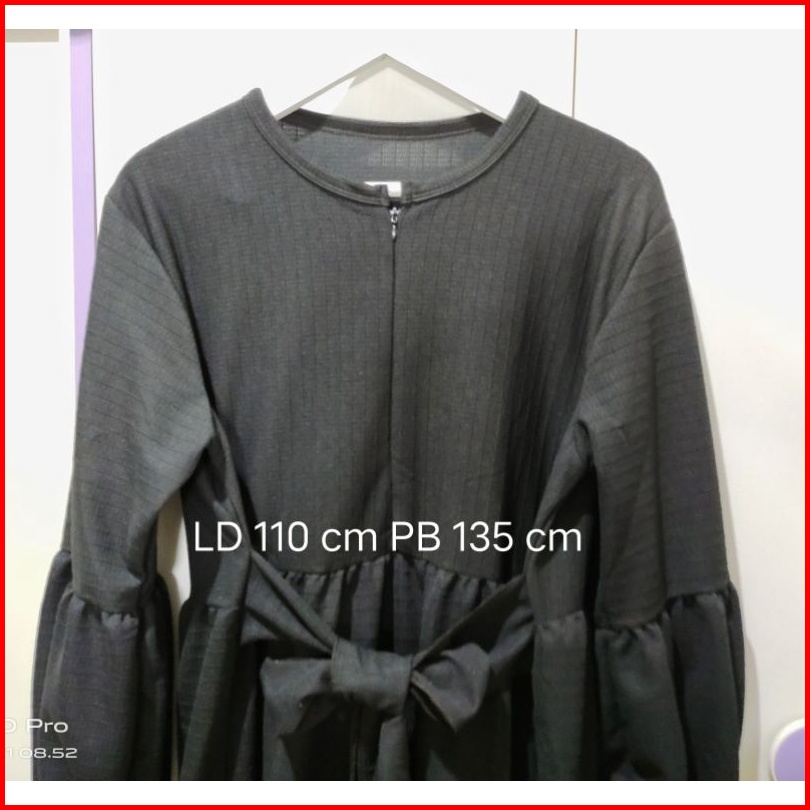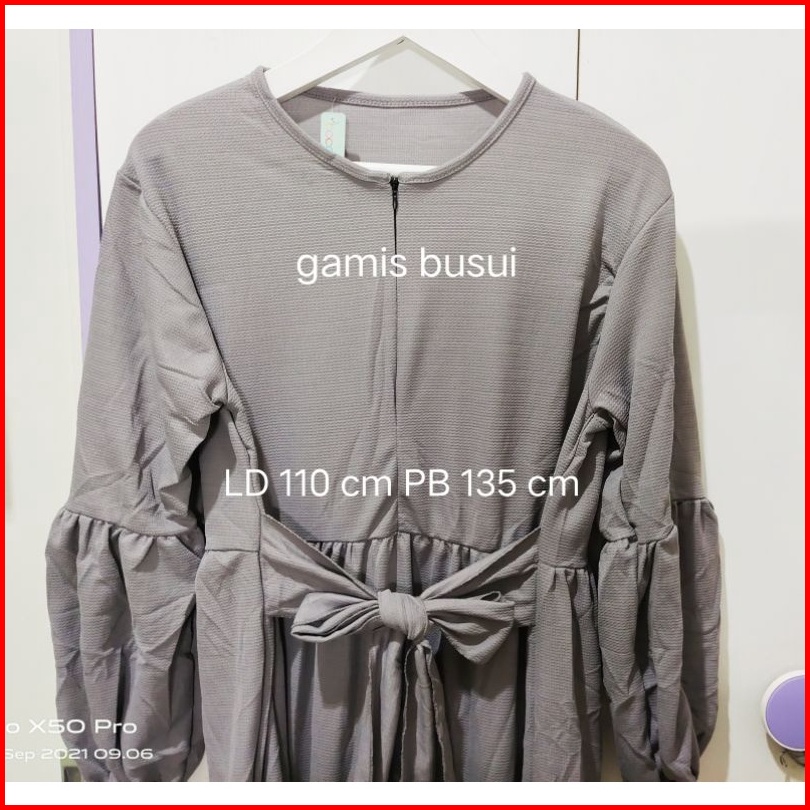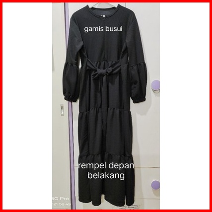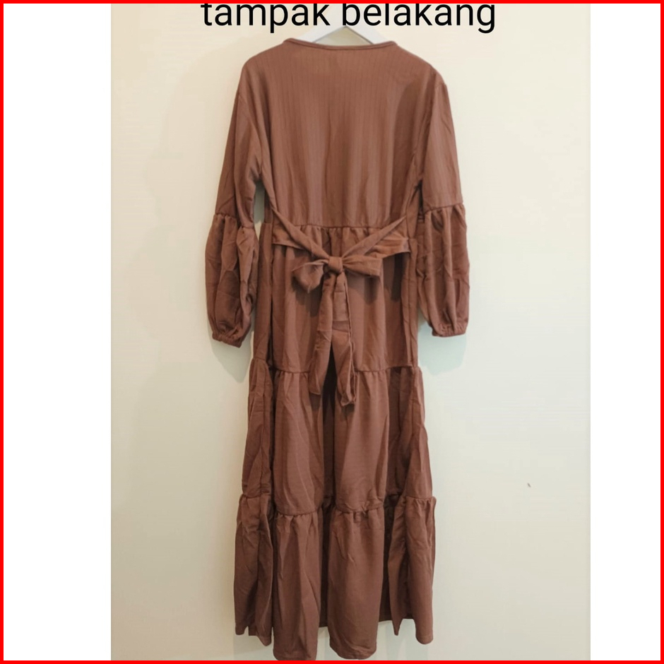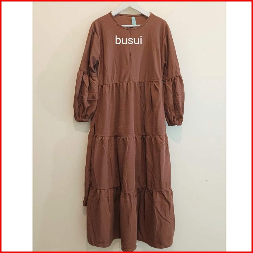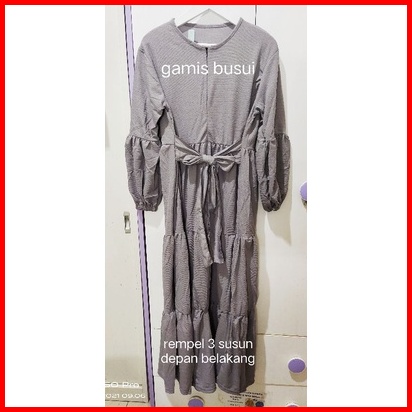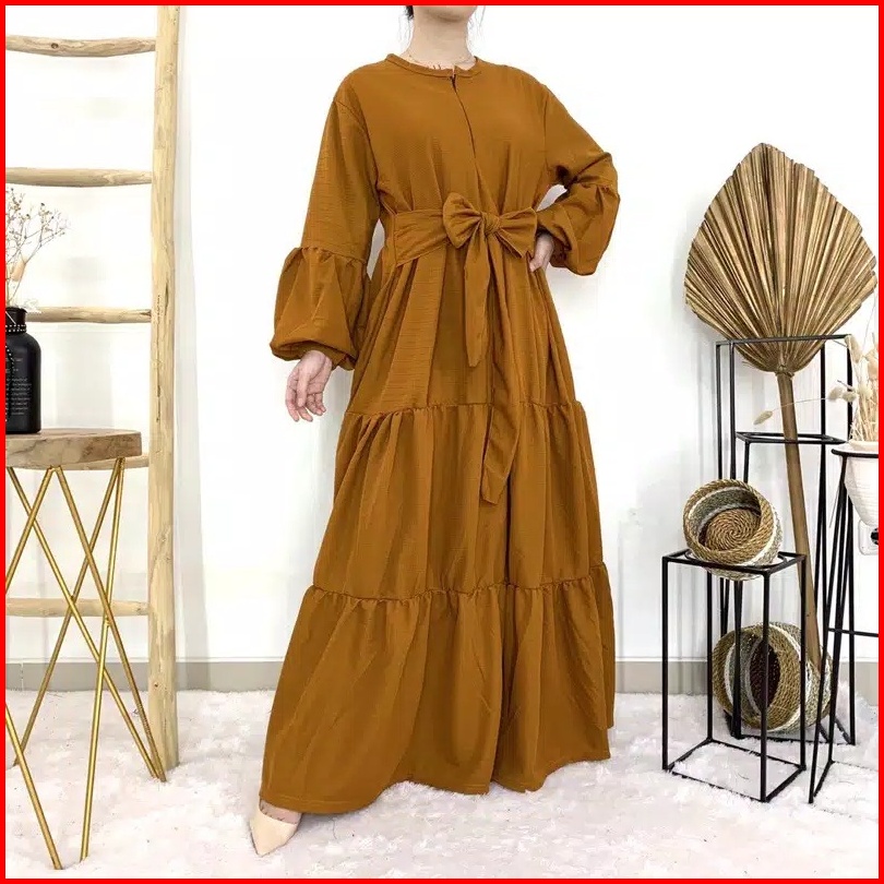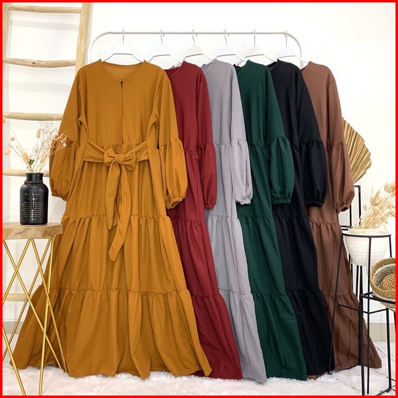 Gamis Busui Mayung Rempel 3 Susun Lengan Balon Tali Pinggang Pita Motif Polos Bahan Waffle Merk Cocobee Kode 744