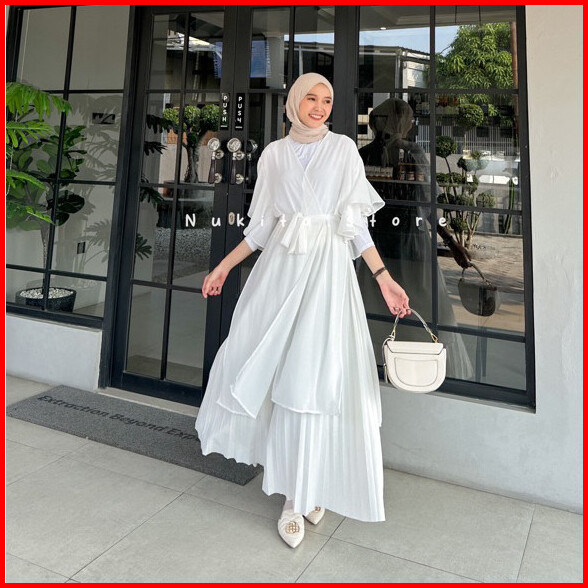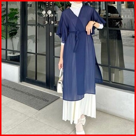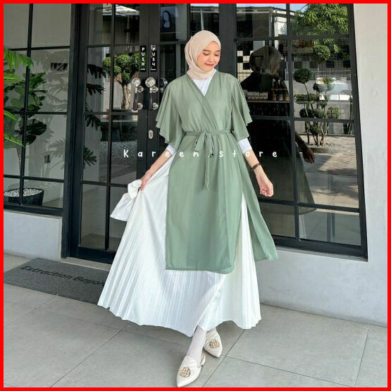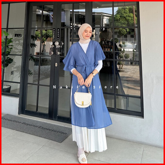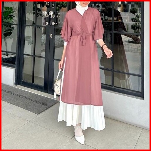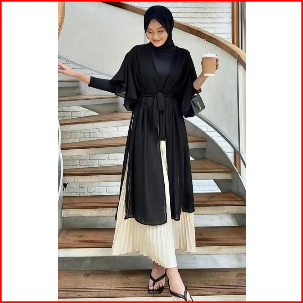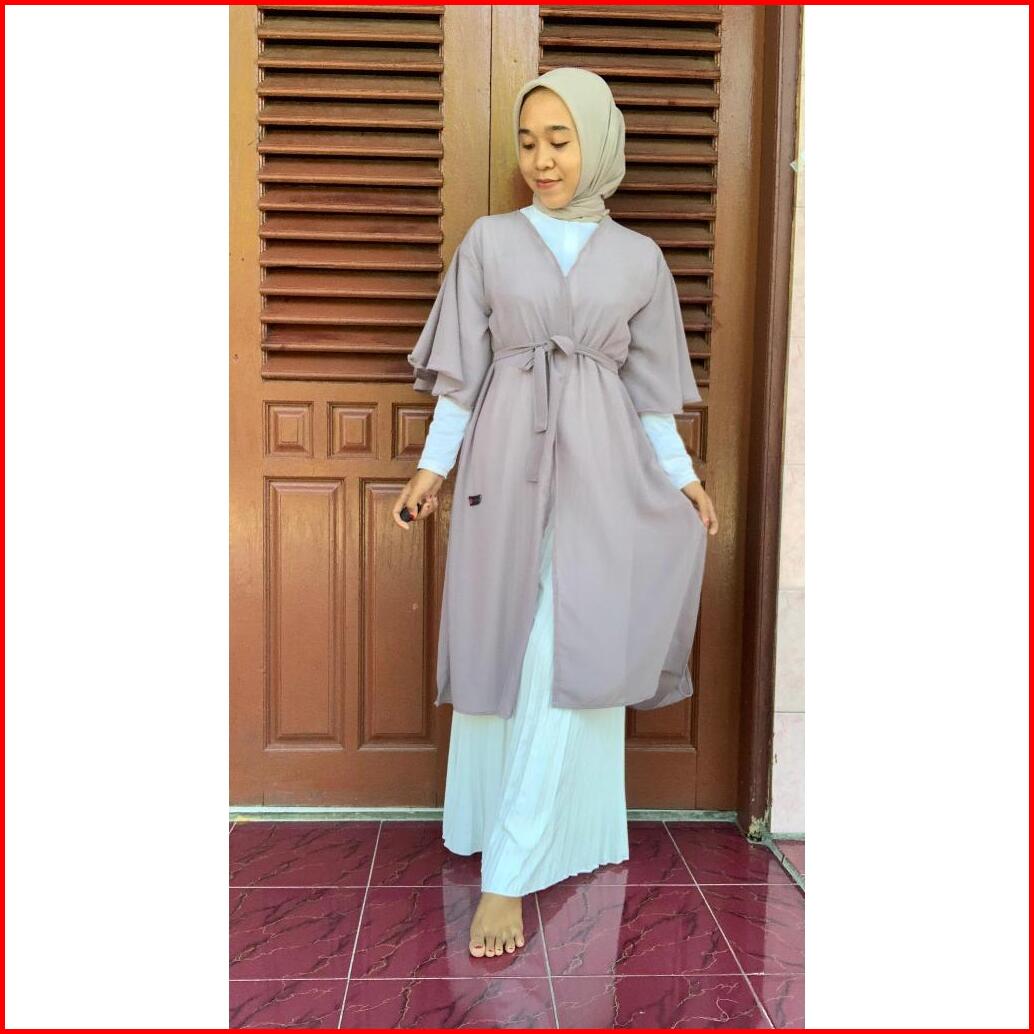 Namia Outer Baju Gamis Lengan Kriwil Outer Cardigan Wanita Bahan Ceruty Babydoll Premium