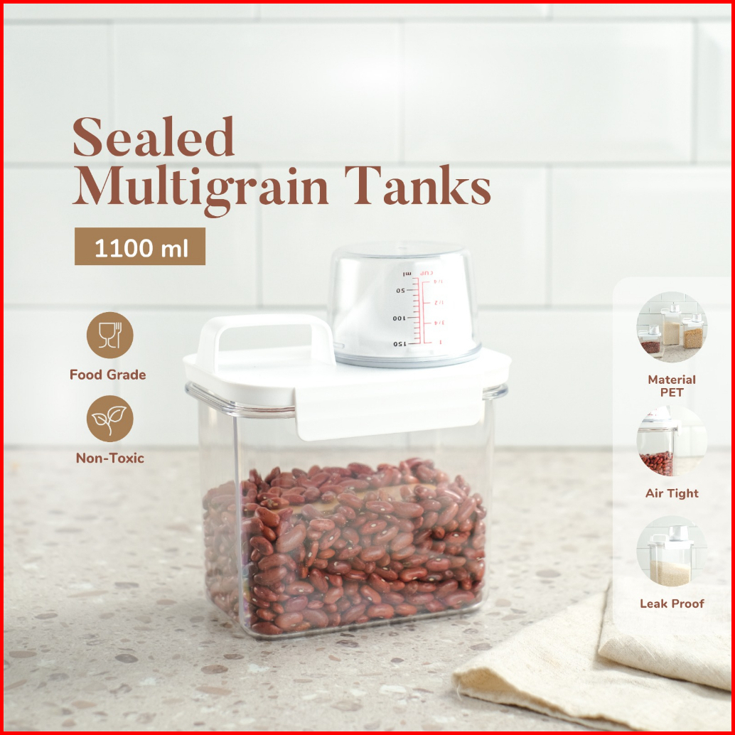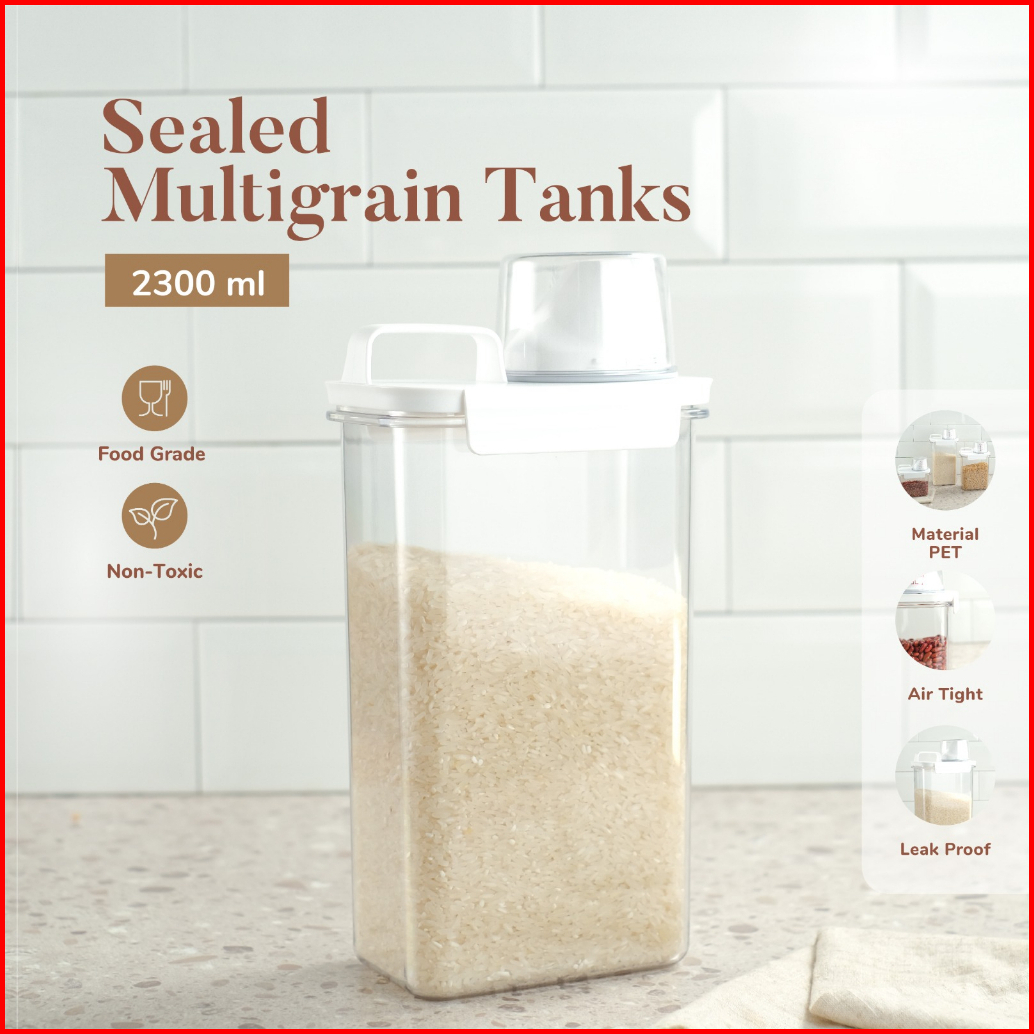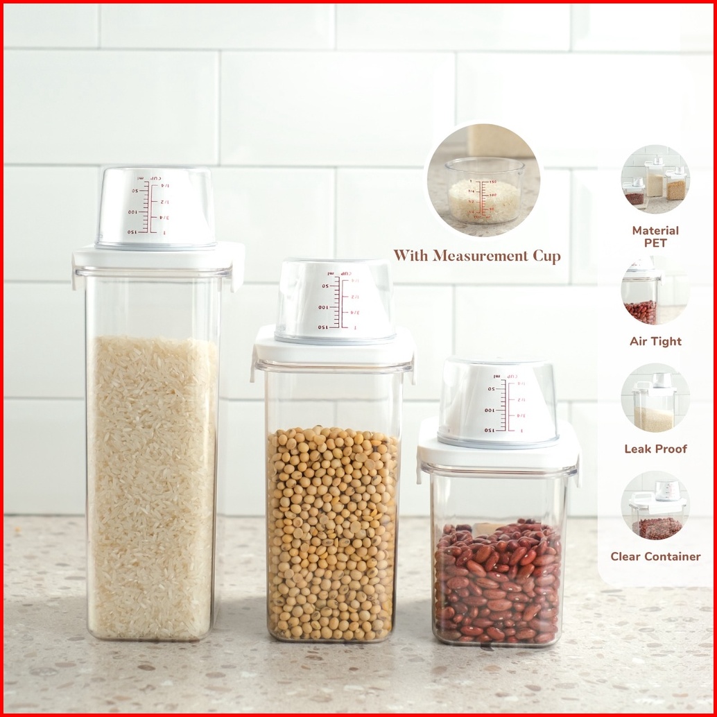 Kontainer Toples Tuang Serbaguna Ada Cup Takar Tempat Penyimpanan Sereal Beras Transparan