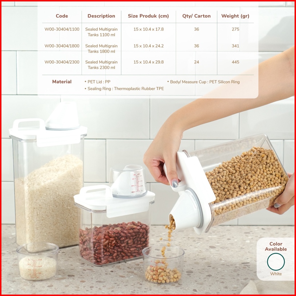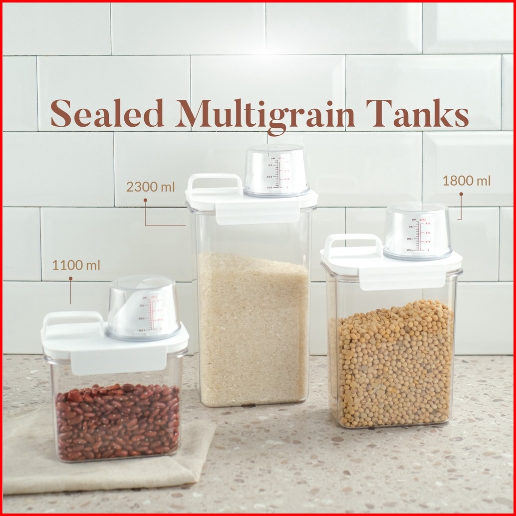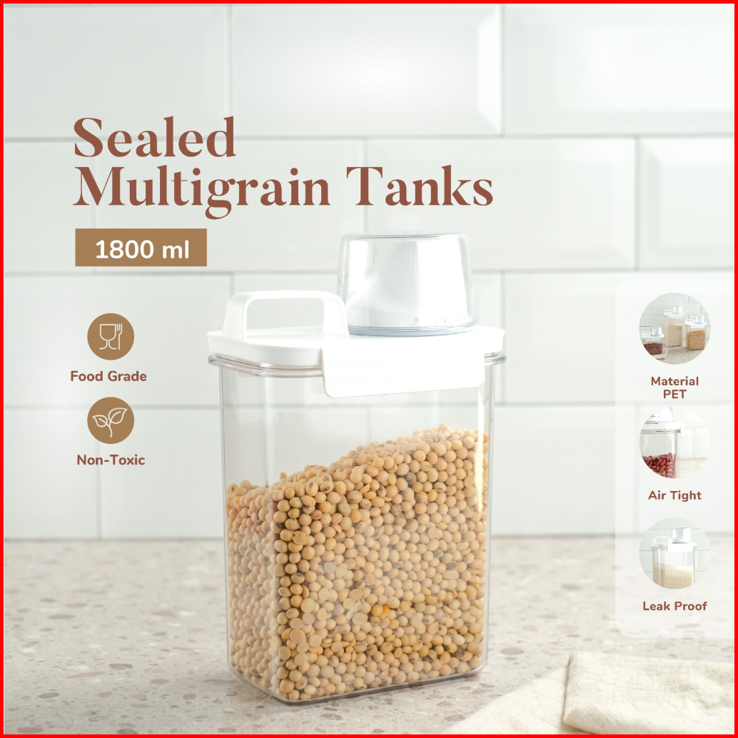 Kontainer Toples Tuang Serbaguna Ada Cup Takar Tempat Penyimpanan Sereal Beras Transparan