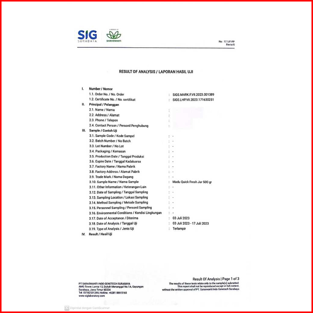 Disney Madu Murni Asli Quick Fresh Honey 1 Kg Jar Kaca