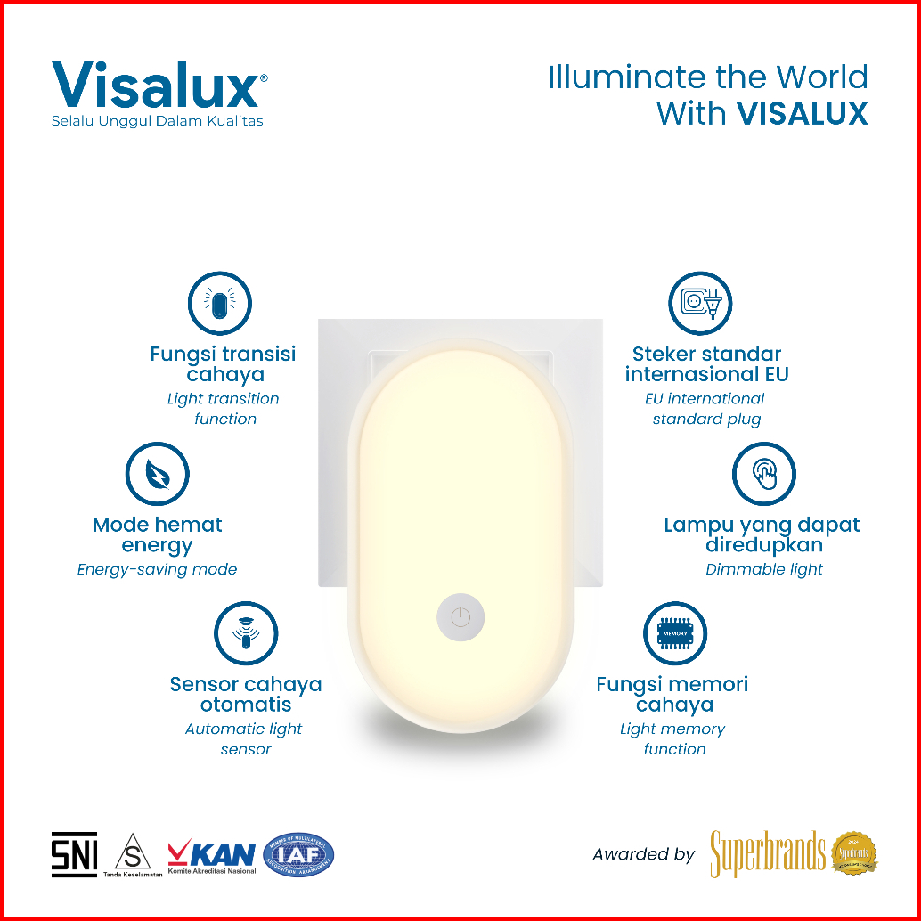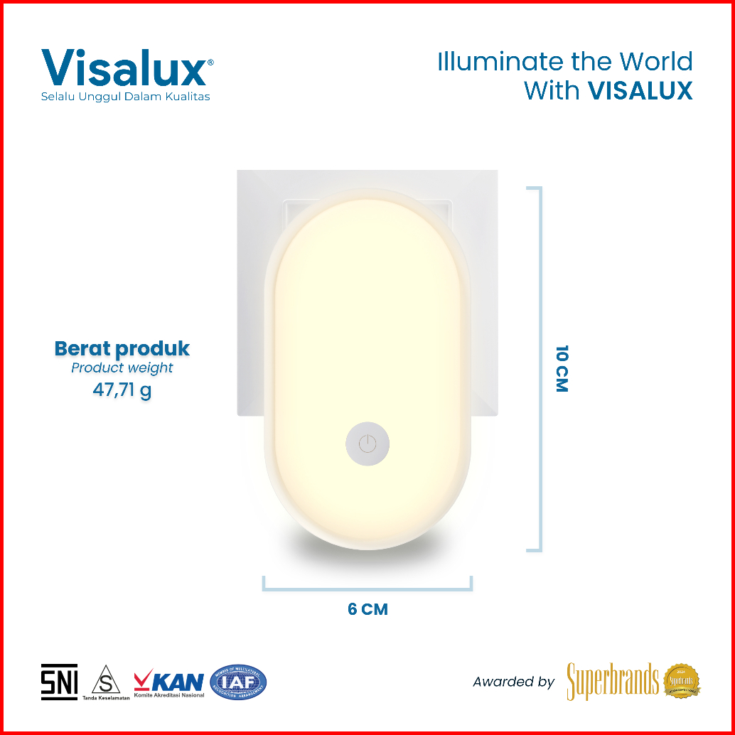 Visalux Lampu Tidur Led Night Light Front Light 3000k Warmwhite Kuning 3w Vlt303ww