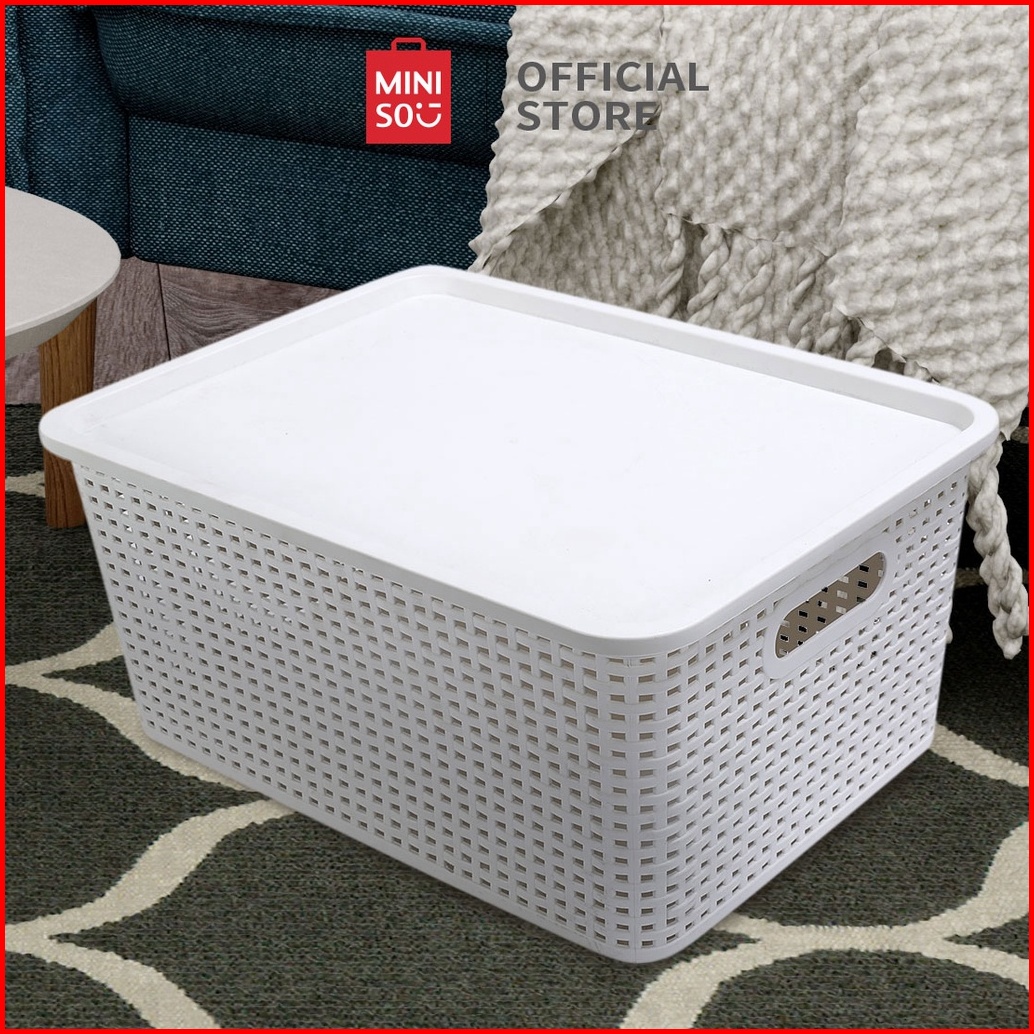 Miniso Keranjang Penyimpanan Dengan Tutup Storage Box Besar Kotak Penyimpanan Tempet Pakaian Multifungsi