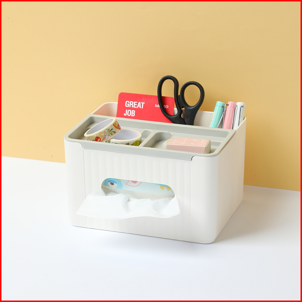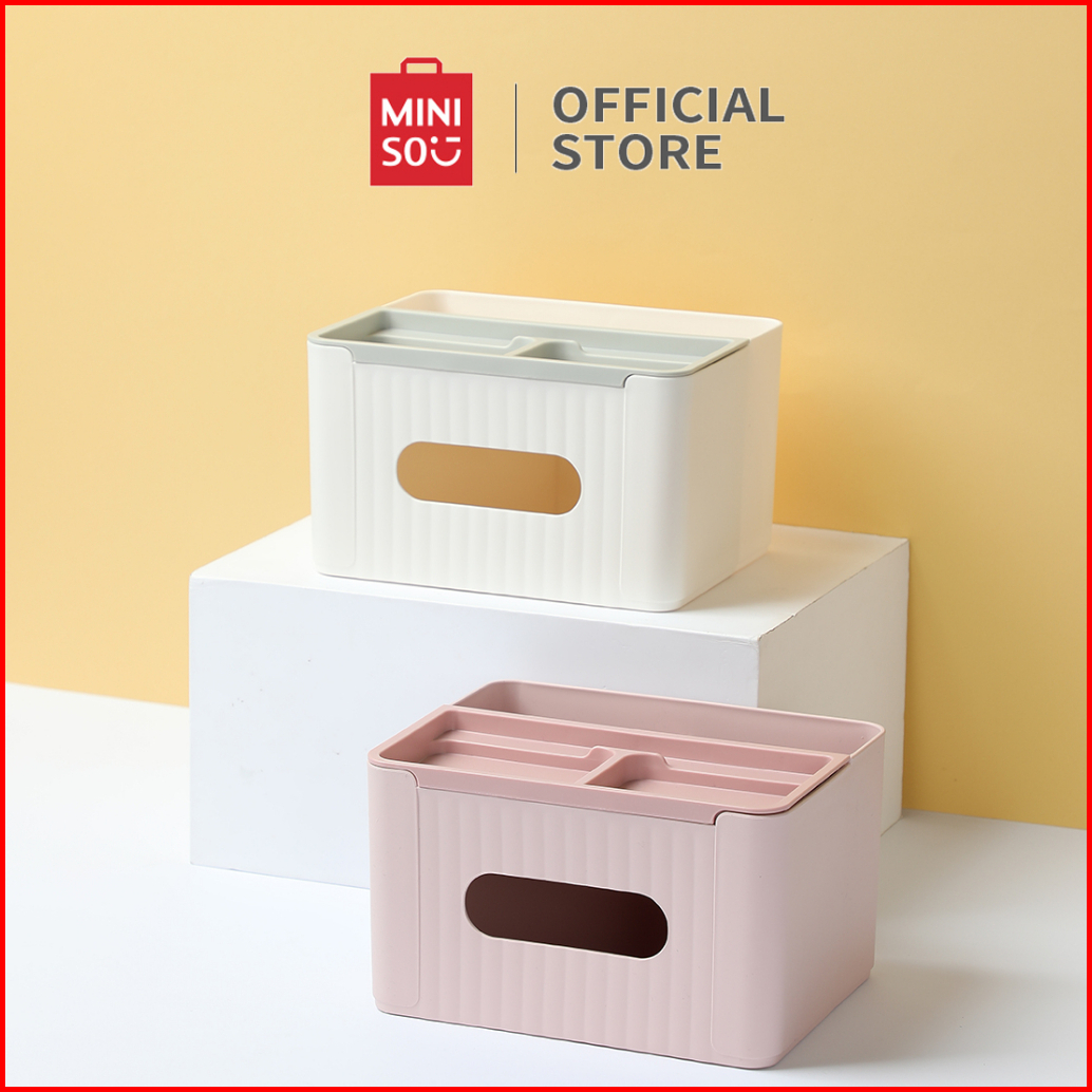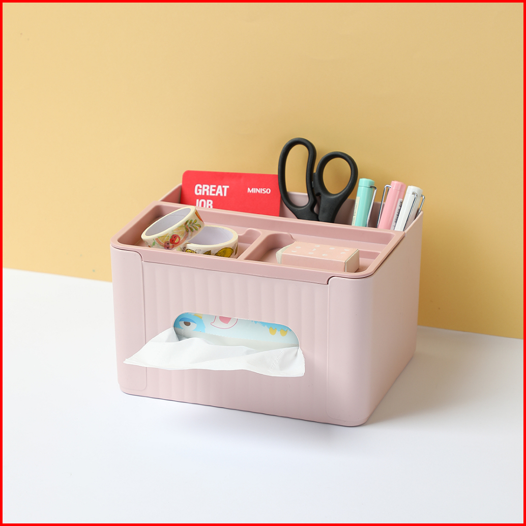 Miniso Kotak Tisu Facial Tempat Tissue Dengan Handphone Holder Tissue Storage Box Dengan Penyimpanan Alat Tulis