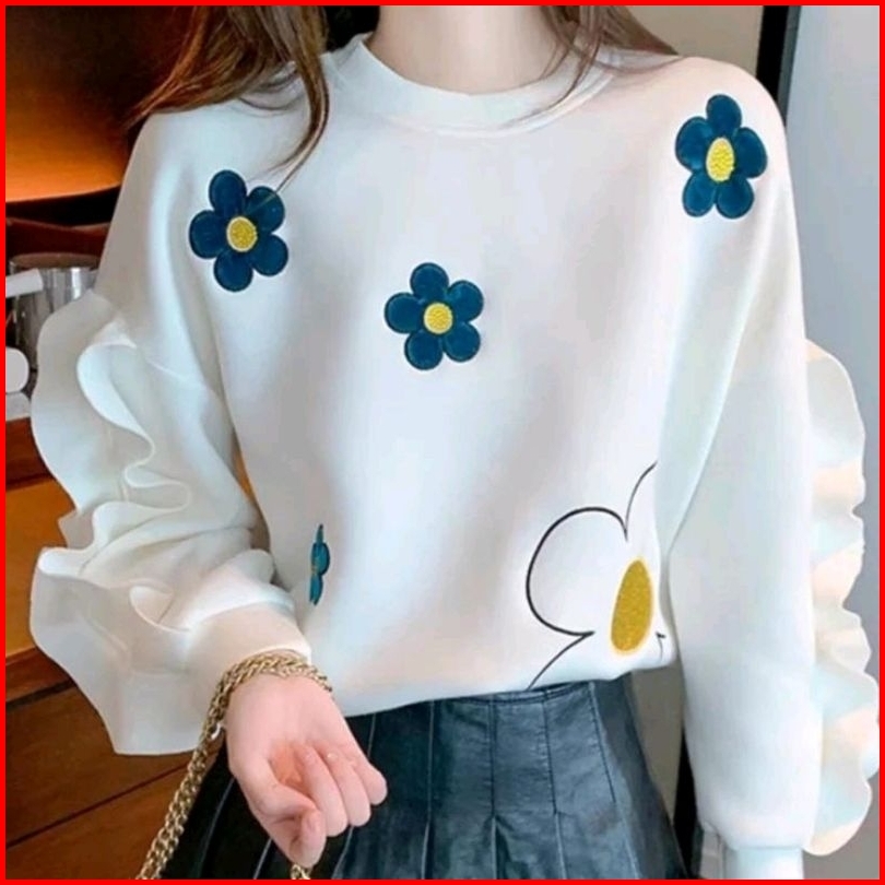 Flower L - Xl Sweater Oversized Crewneck Real Pict