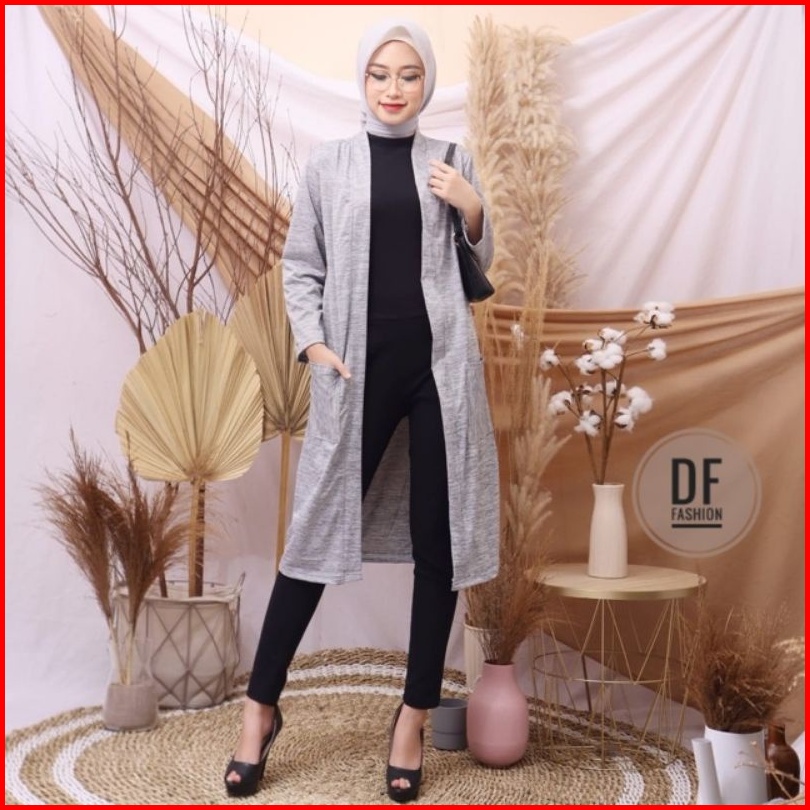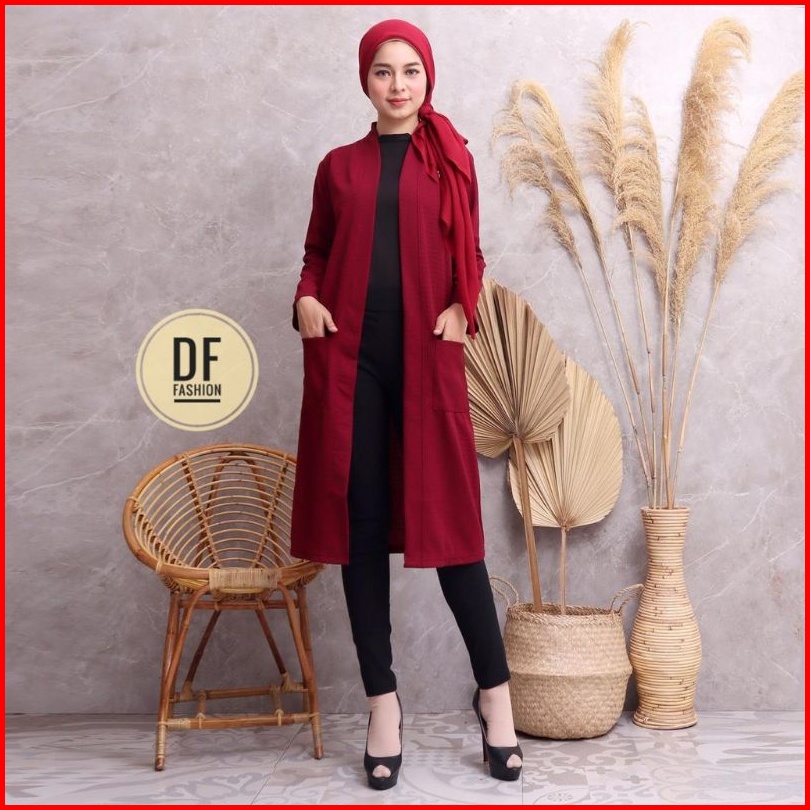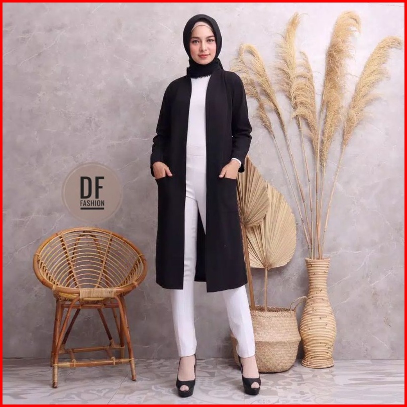 Long Cardigan Saku Cardigan Wanita Lengan Panjang Cardigan