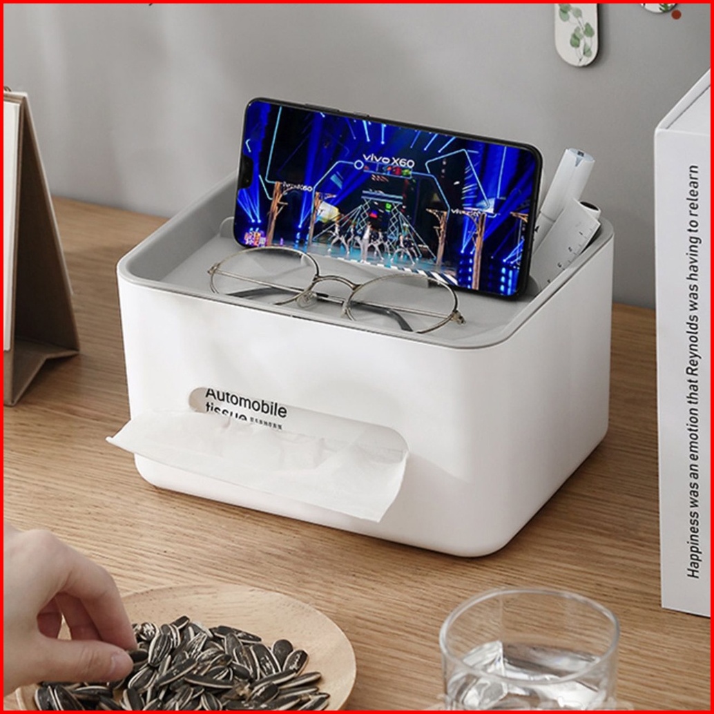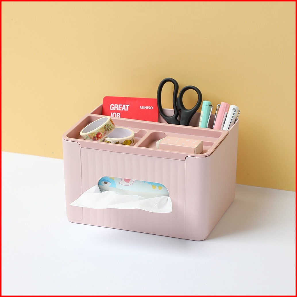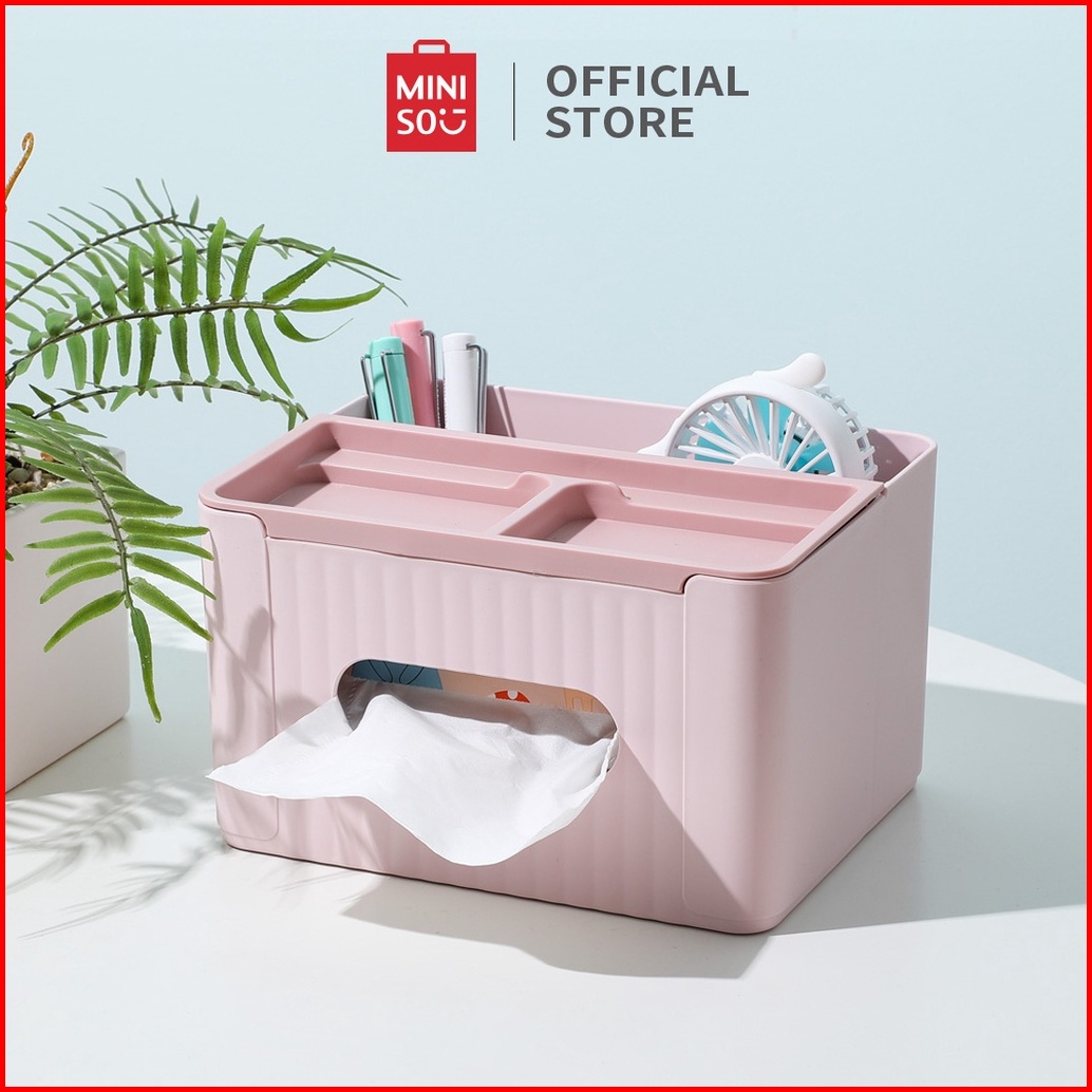 Miniso Tempat Tisu Kotak Tisu Serbaguna Desktop Tissue Box Organizer Kotak Penyimpanan Tisu Multifungsi Penyimpanan Kosm