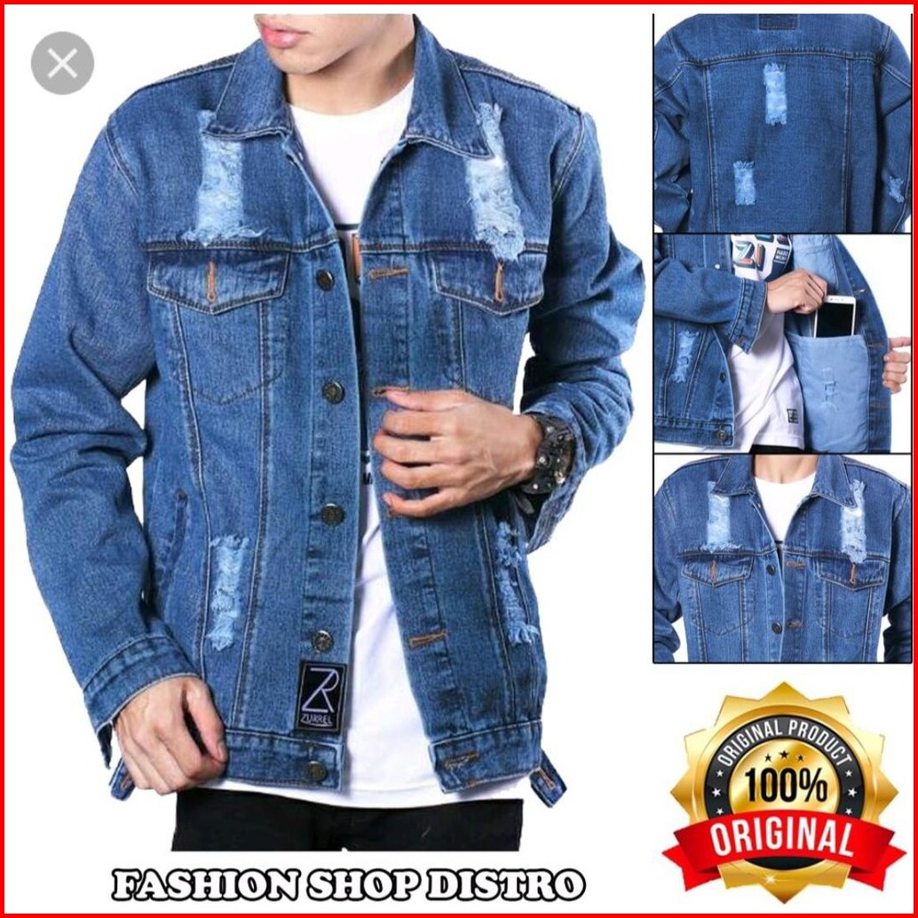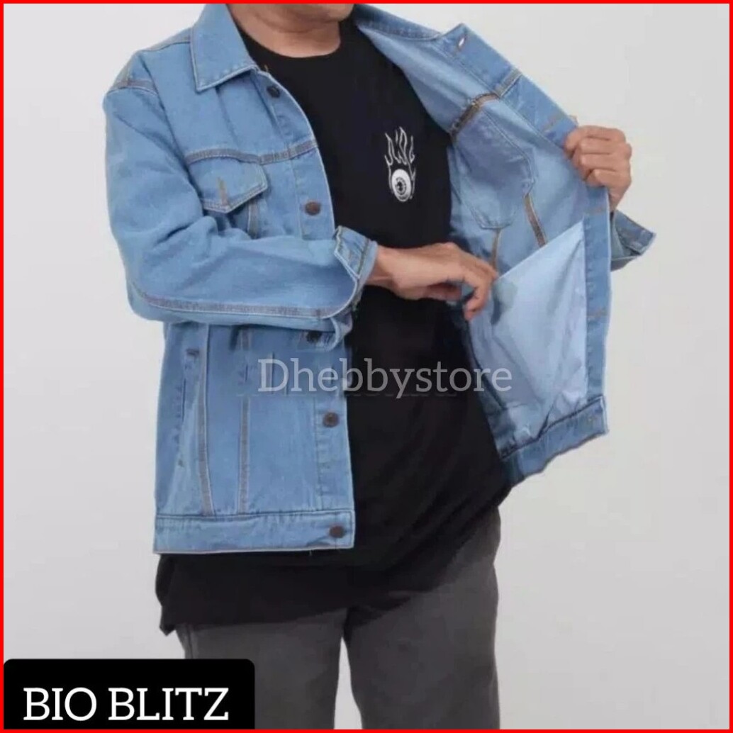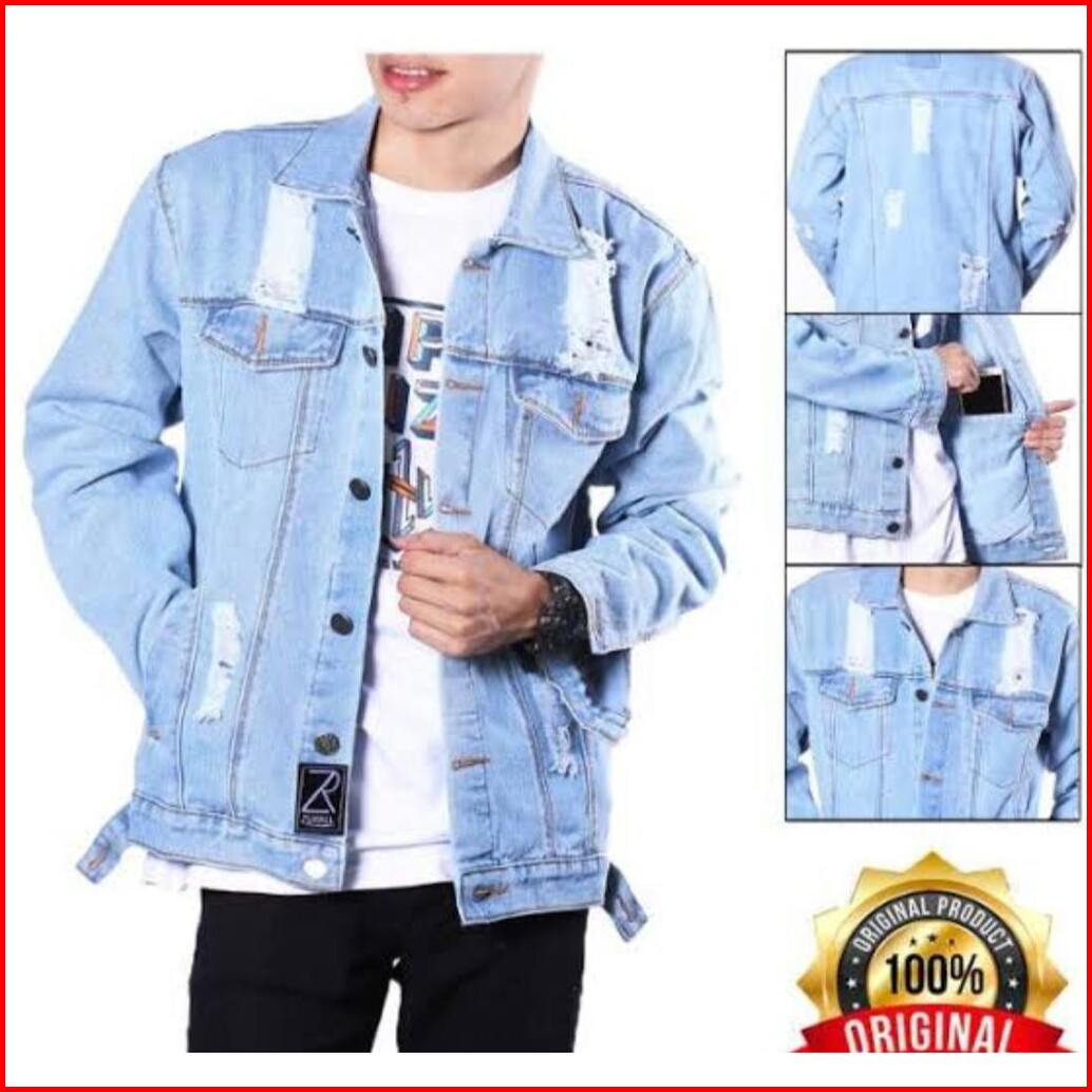 M L Xl Xxl 3xl 4xl Jaket Jeasn Pria Sobek Robek Ripped Bioblitz Biowash Biru Muda Tua