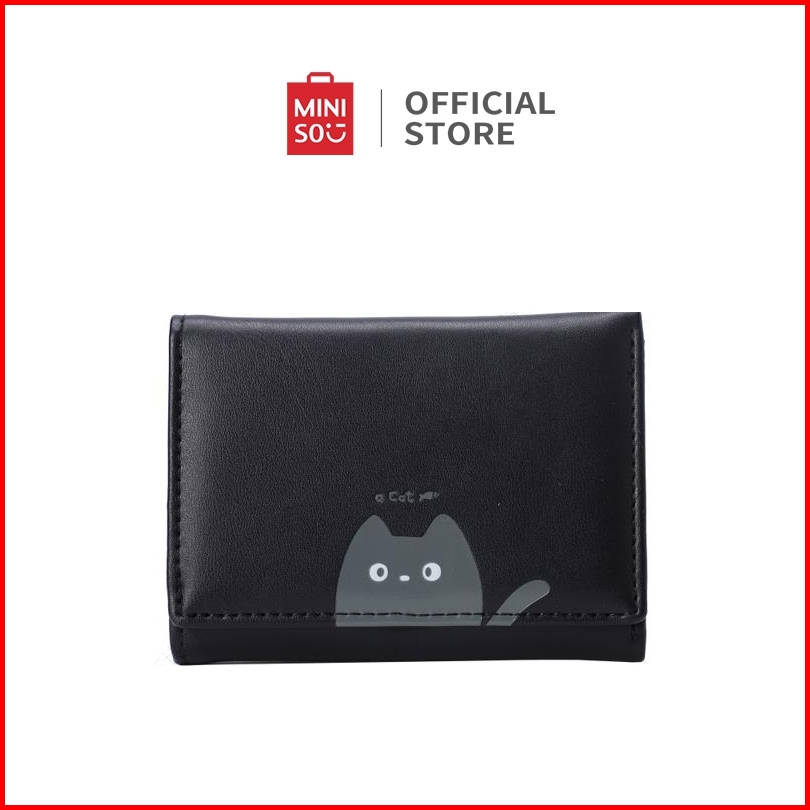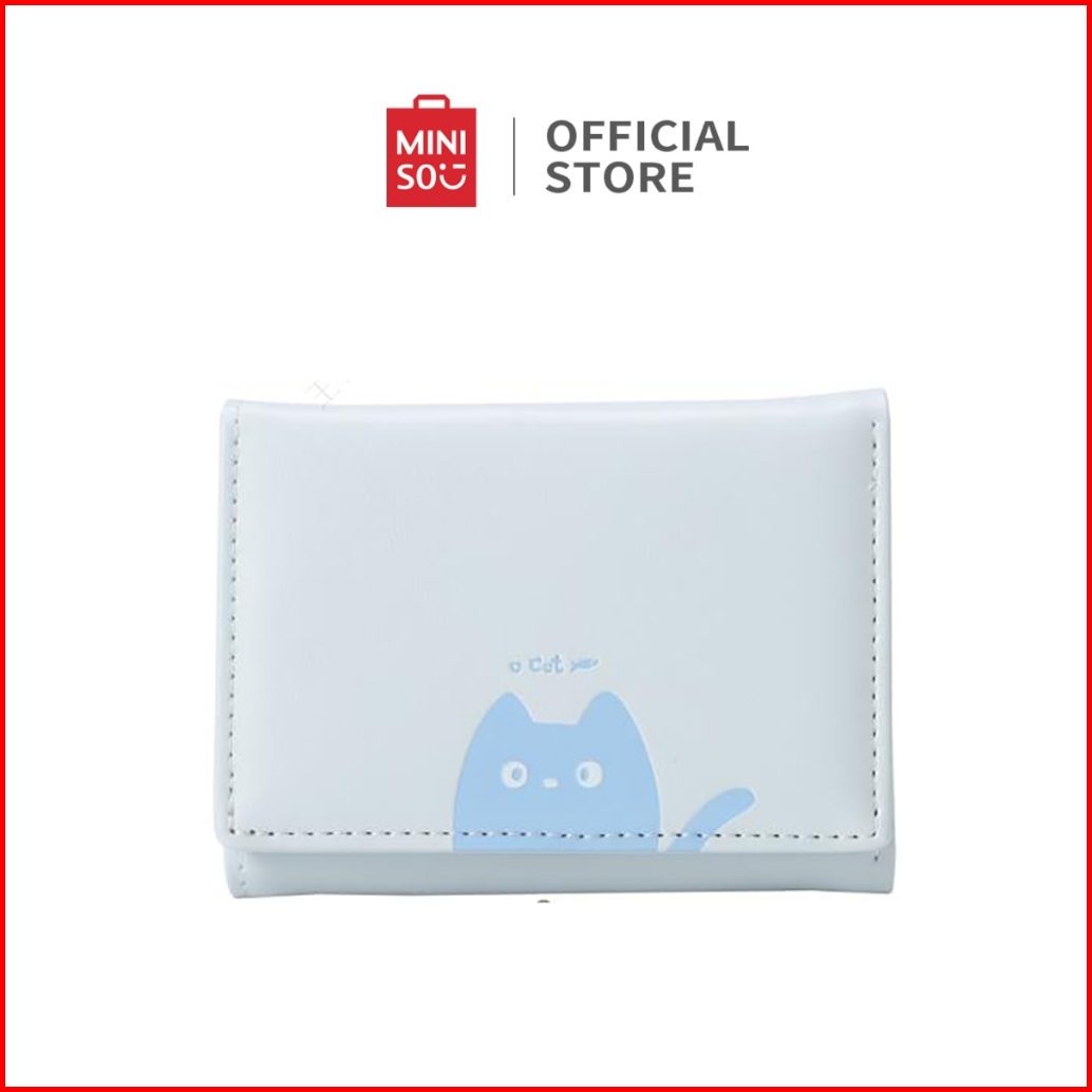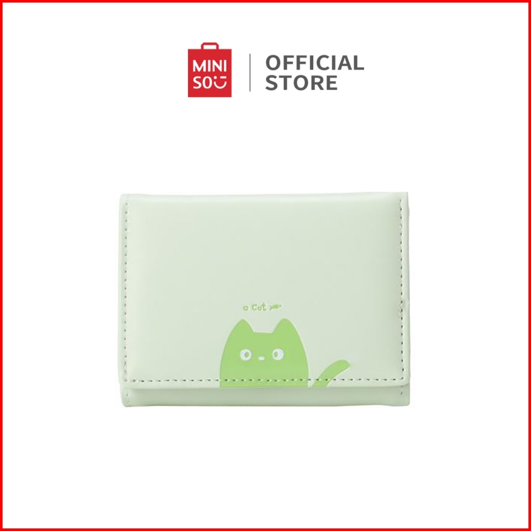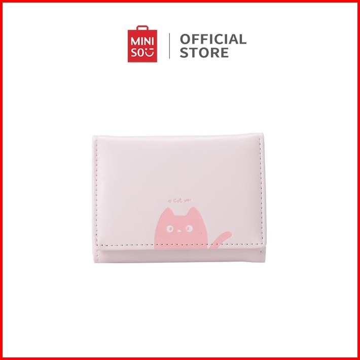Miniso Dompet Wanita Women S Wallet Cute Kitten Short Tri-fold Wallet 7 Slot Kartu 1 Slot Uang Kertas Pola Lucu Dan Mena