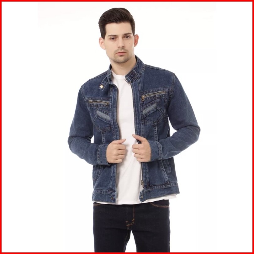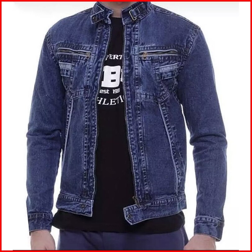 Jaket Jeans Pria Kerah Tinggi Resleting Jaket Jeans Cowok Tb Bandung Murah Jeans Bomber