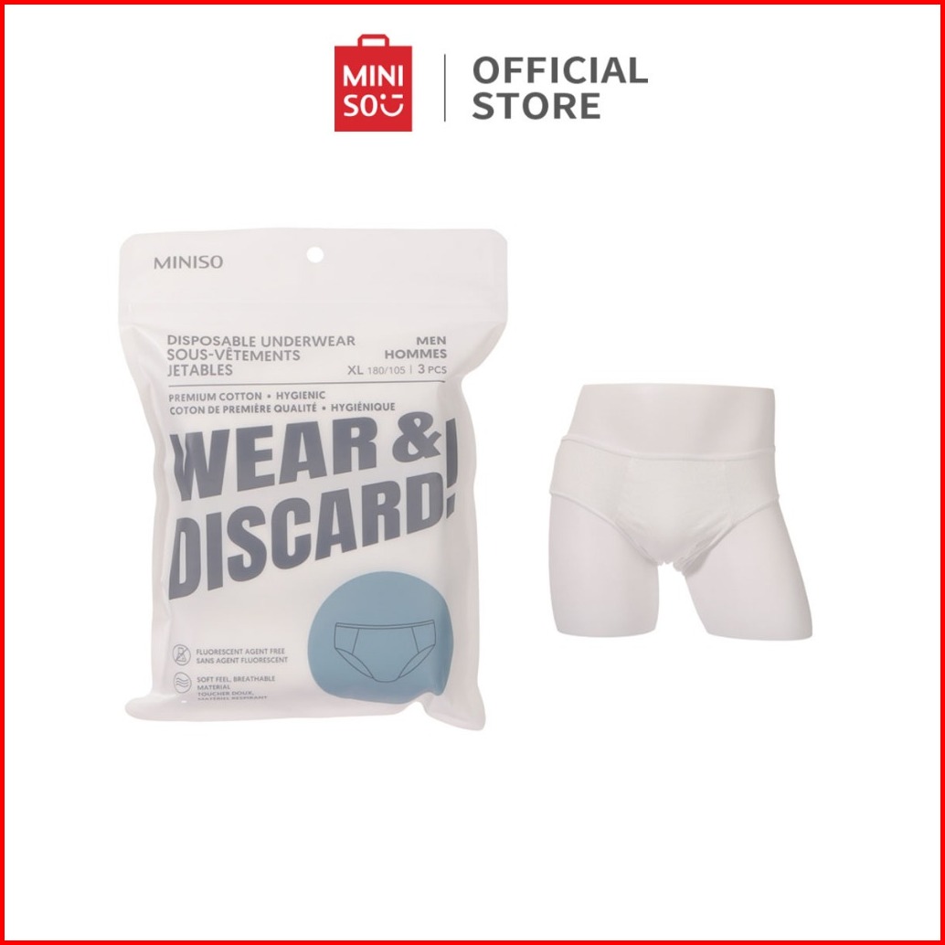 Miniso Men S Disposable Underwear Pakaian Dalam Sekali Pakai 100 Katun Dikemas Secara Individual Mudah Dibawa 3 Pcs