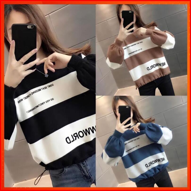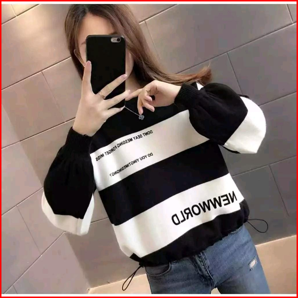 Sweater Stripe Crewneck New Wolrd Korean Style Ic Ntr