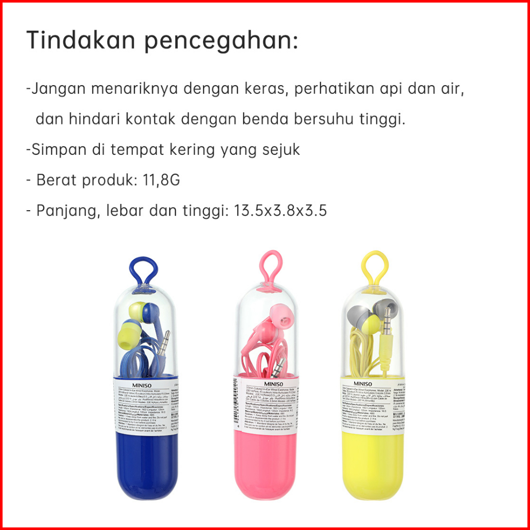 Miniso Earphone 3.5mm In Ear Kabel Headphone Untuk Apple Dan Android Dengan Kualitas Suara Yang Tinggi Dan Fungsi Panggi