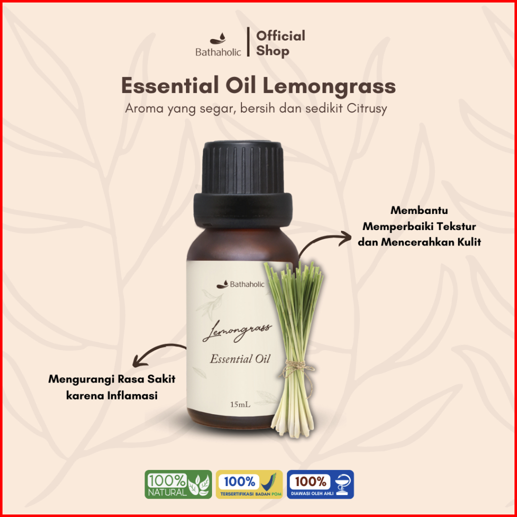 Bathaholic - Lemongrass Pure Essential Oil Aromatherapy Pengharum Ruangan Segar Dan Menenangkan