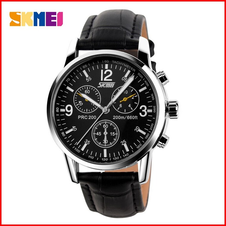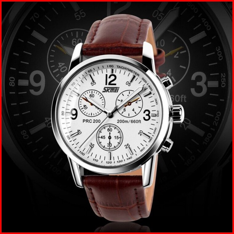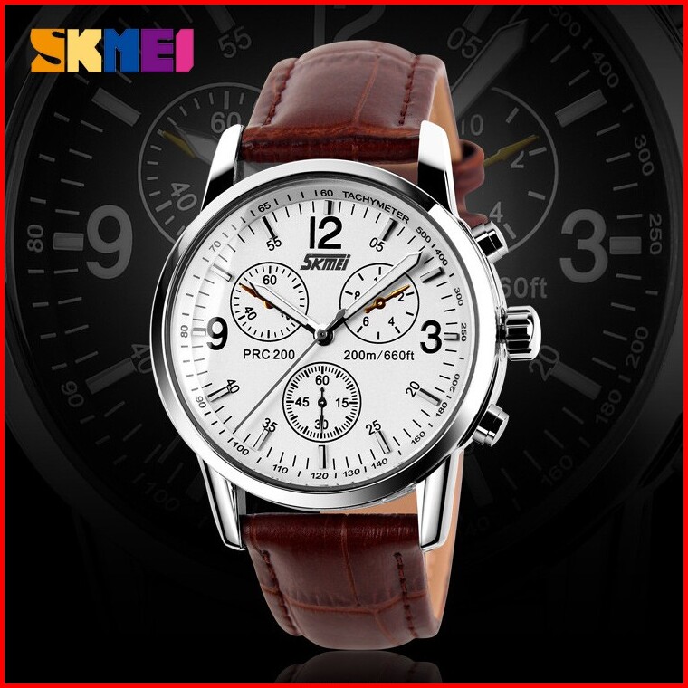 Skmei 9070l Jam Tangan Pria Analog Tali Kulit Watchkite Wkos
