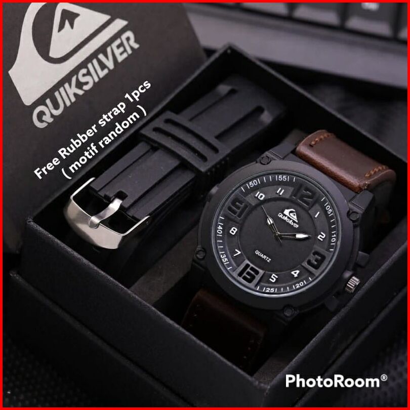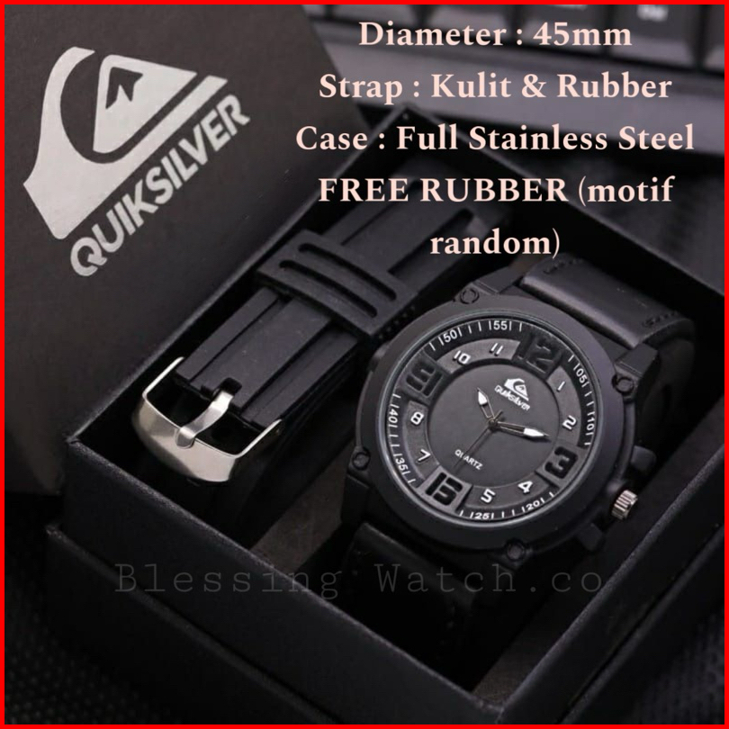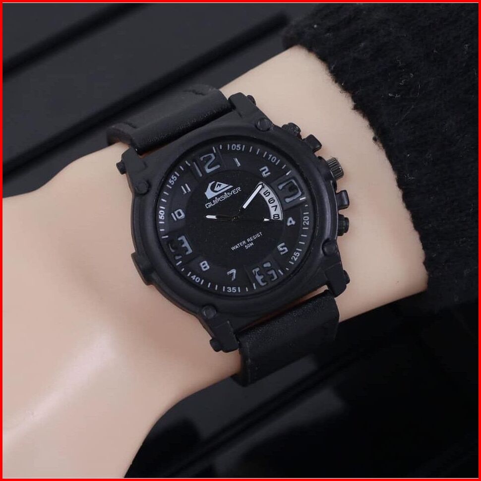 Best Seller - - Jam Tangan Pria Quiksilver Q8307 Ts Tanggal Aktif Tali Kulit Free Box Baterai Cadangan