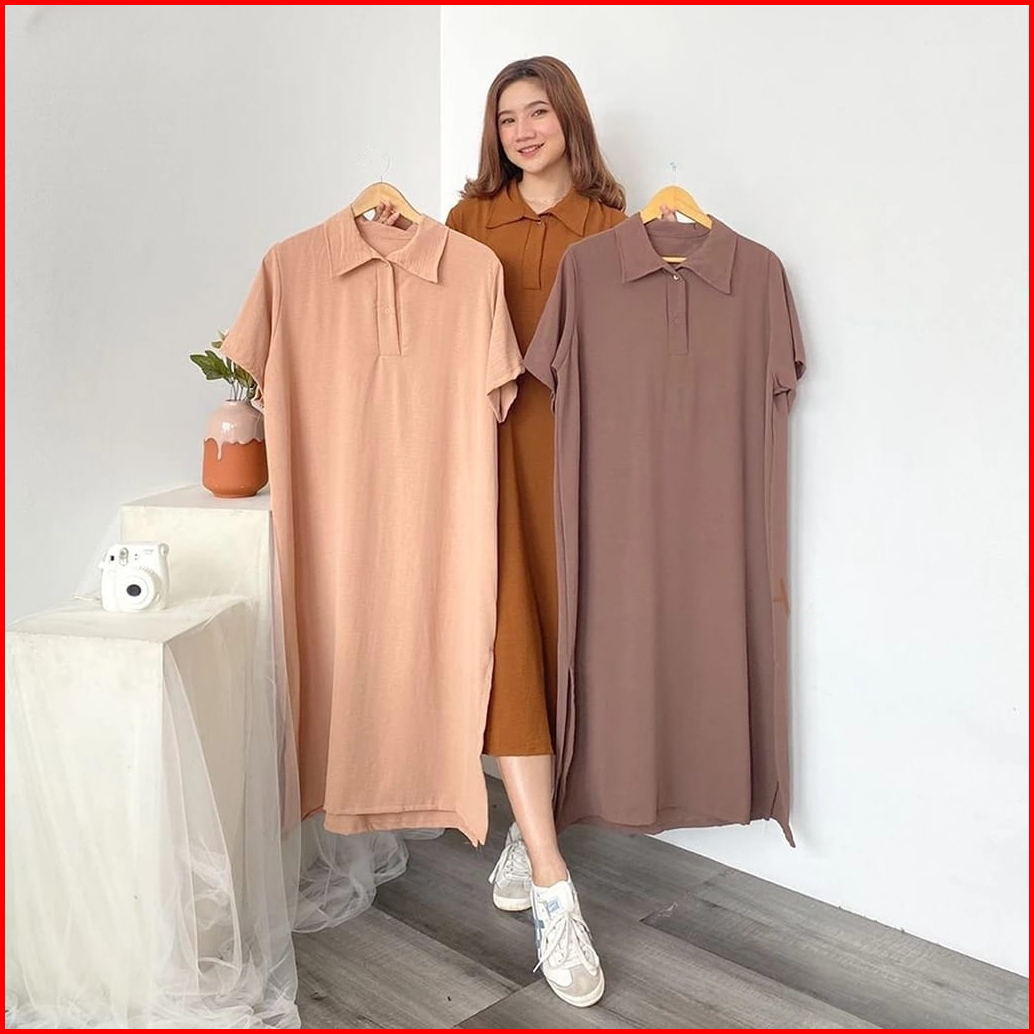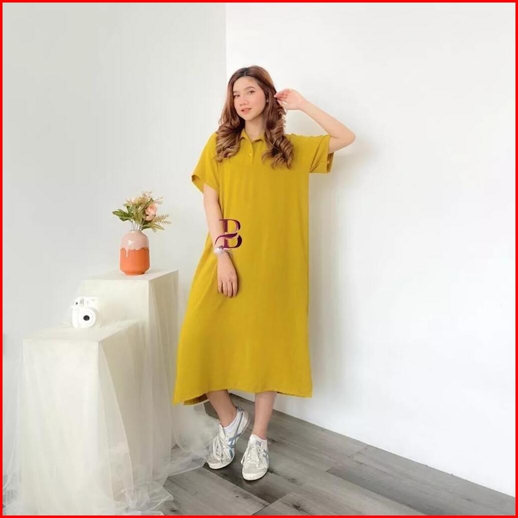 Dress Crinkle Airflow Daster Korean Style Home Dress Midi Dress Kerah Kekinian