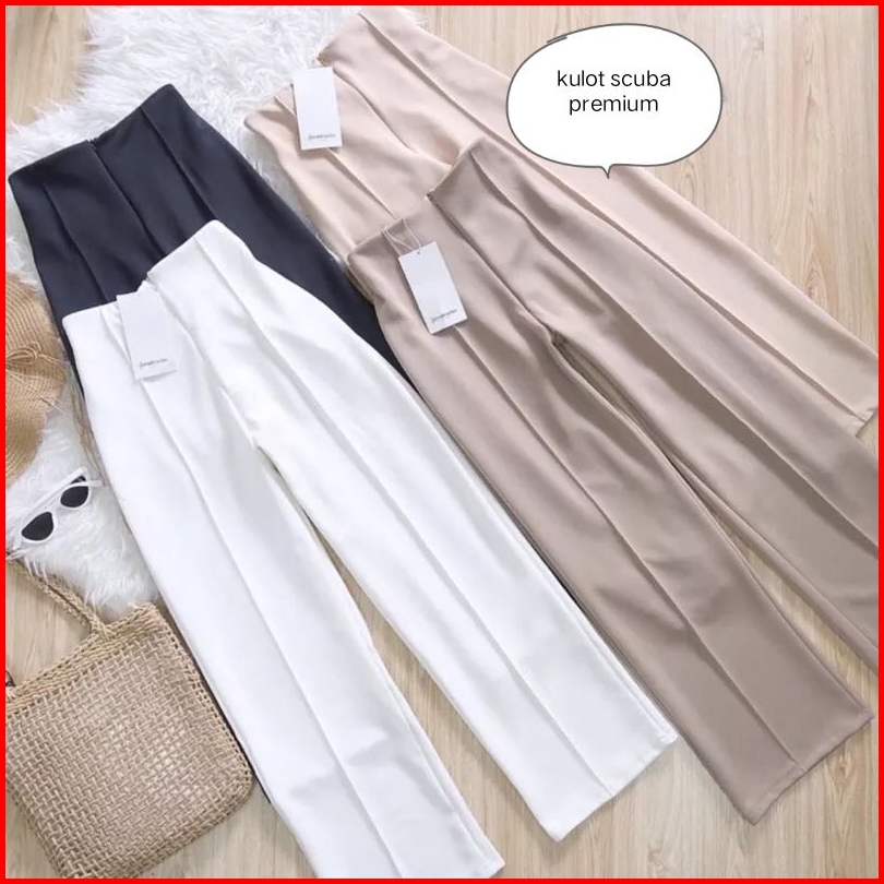 Celana Kulot Highwaist Wanita Bigsaiz Jumbo 90-110kg Scuba Premium Super Jumbo