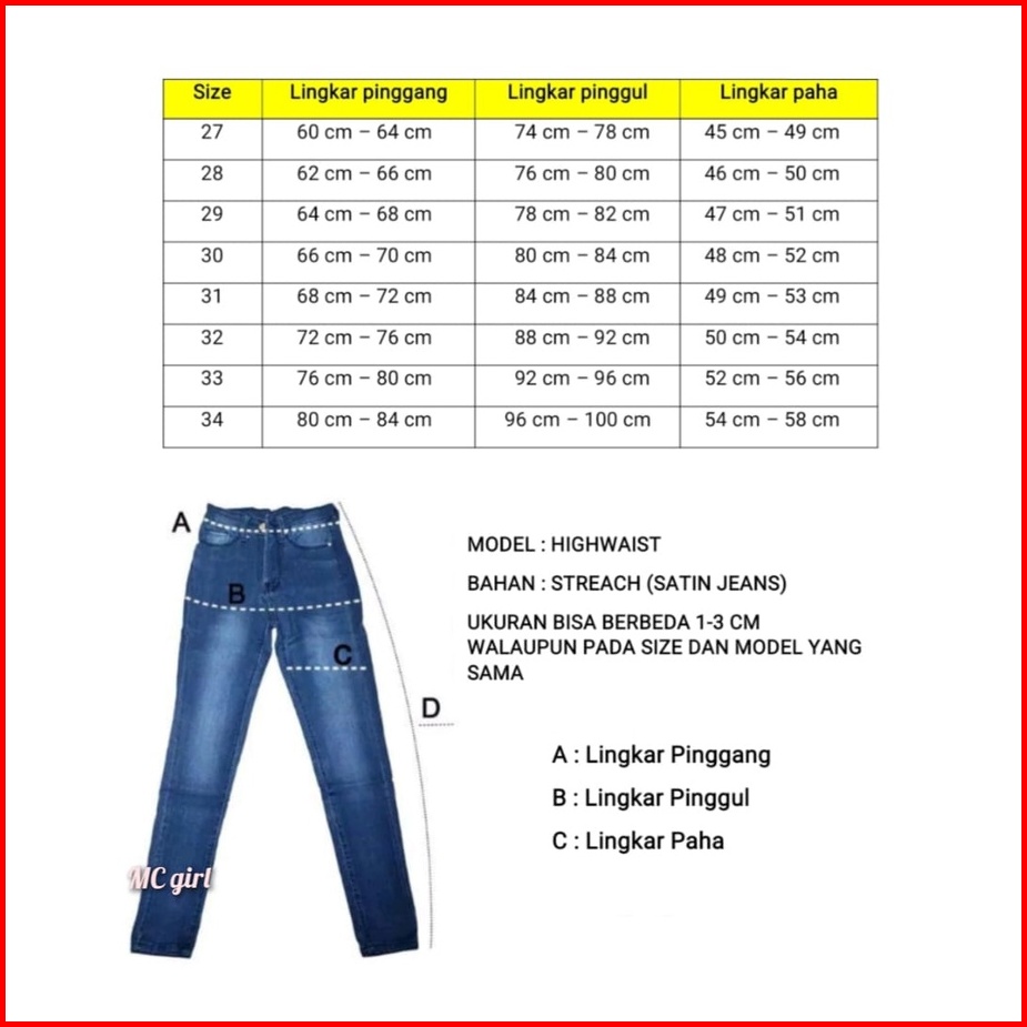 Size 27 - 34 Mc Girl - High Waist Biru Muda Wanita Highwaist Celana Jeans Pinggang Tinggi 7c-g