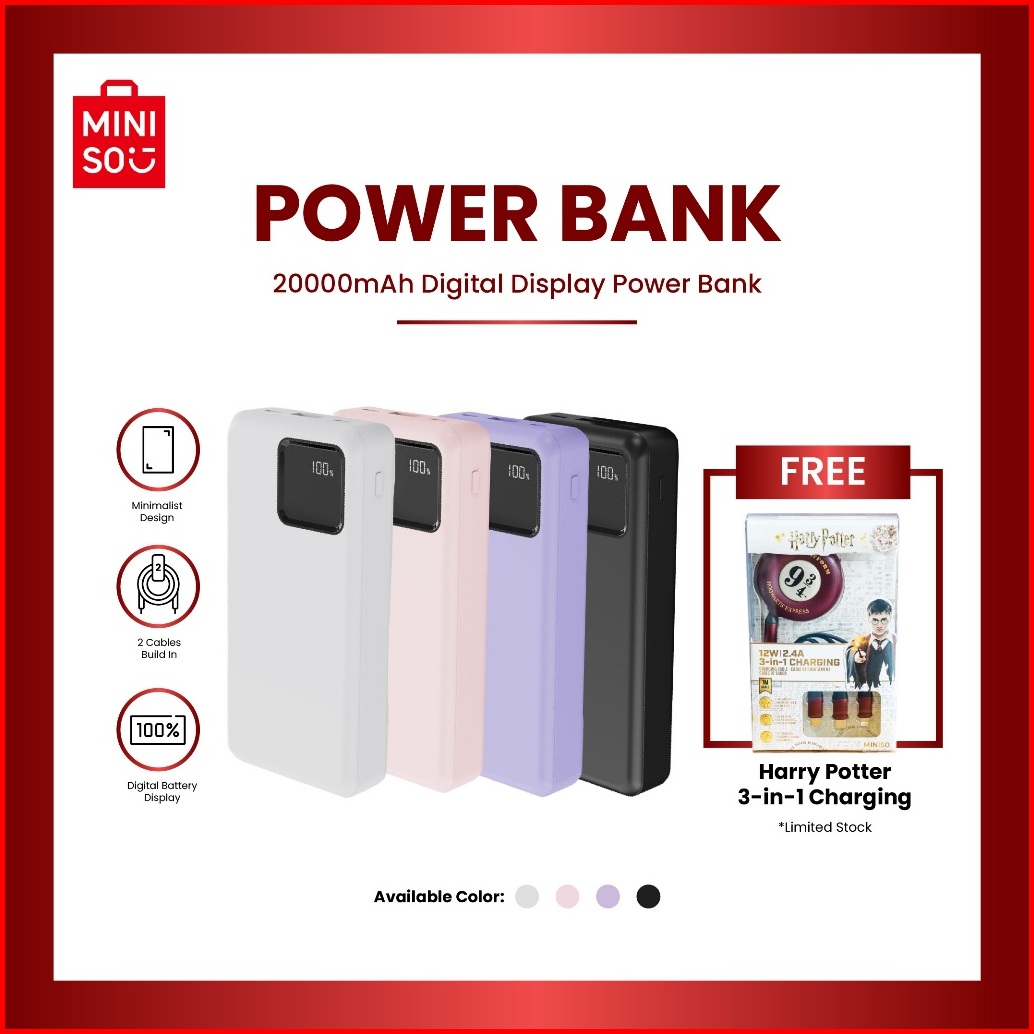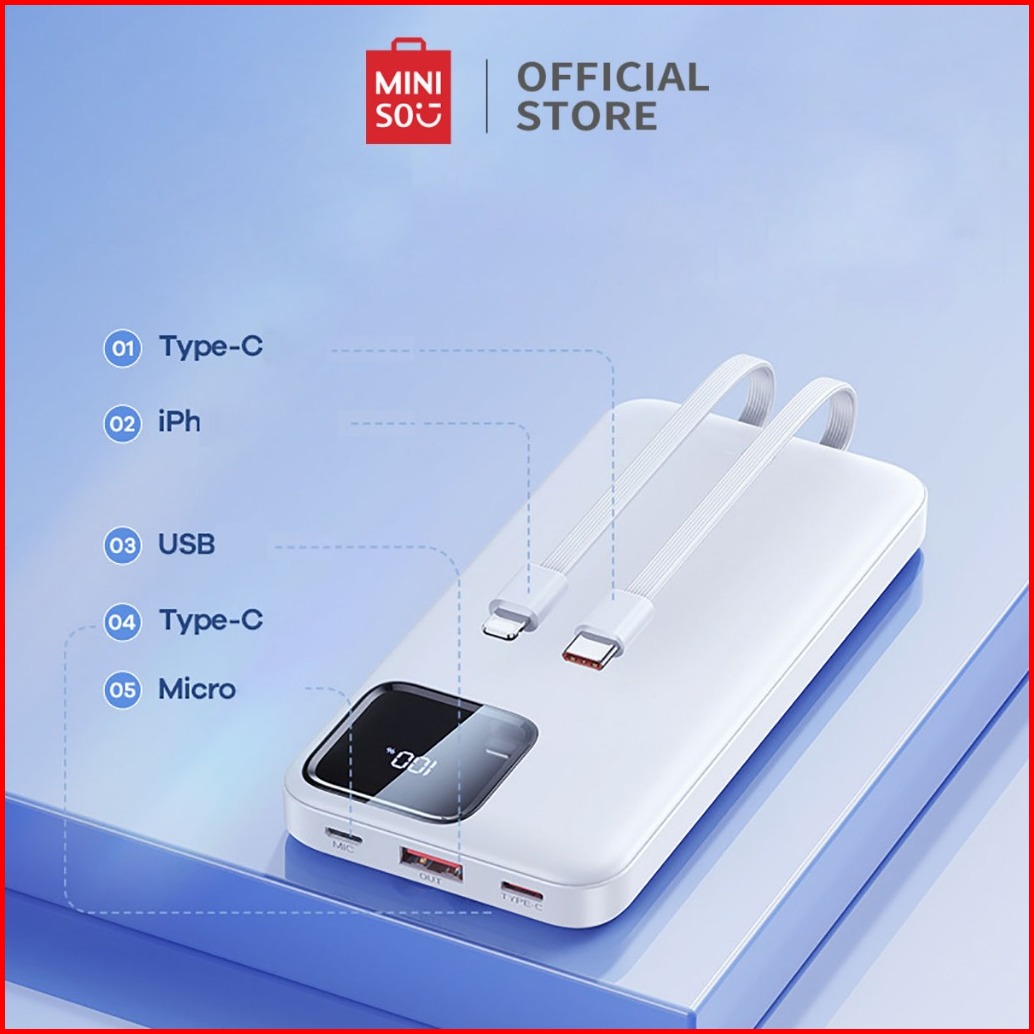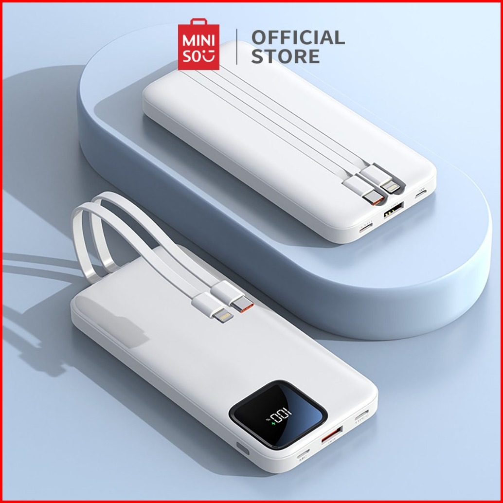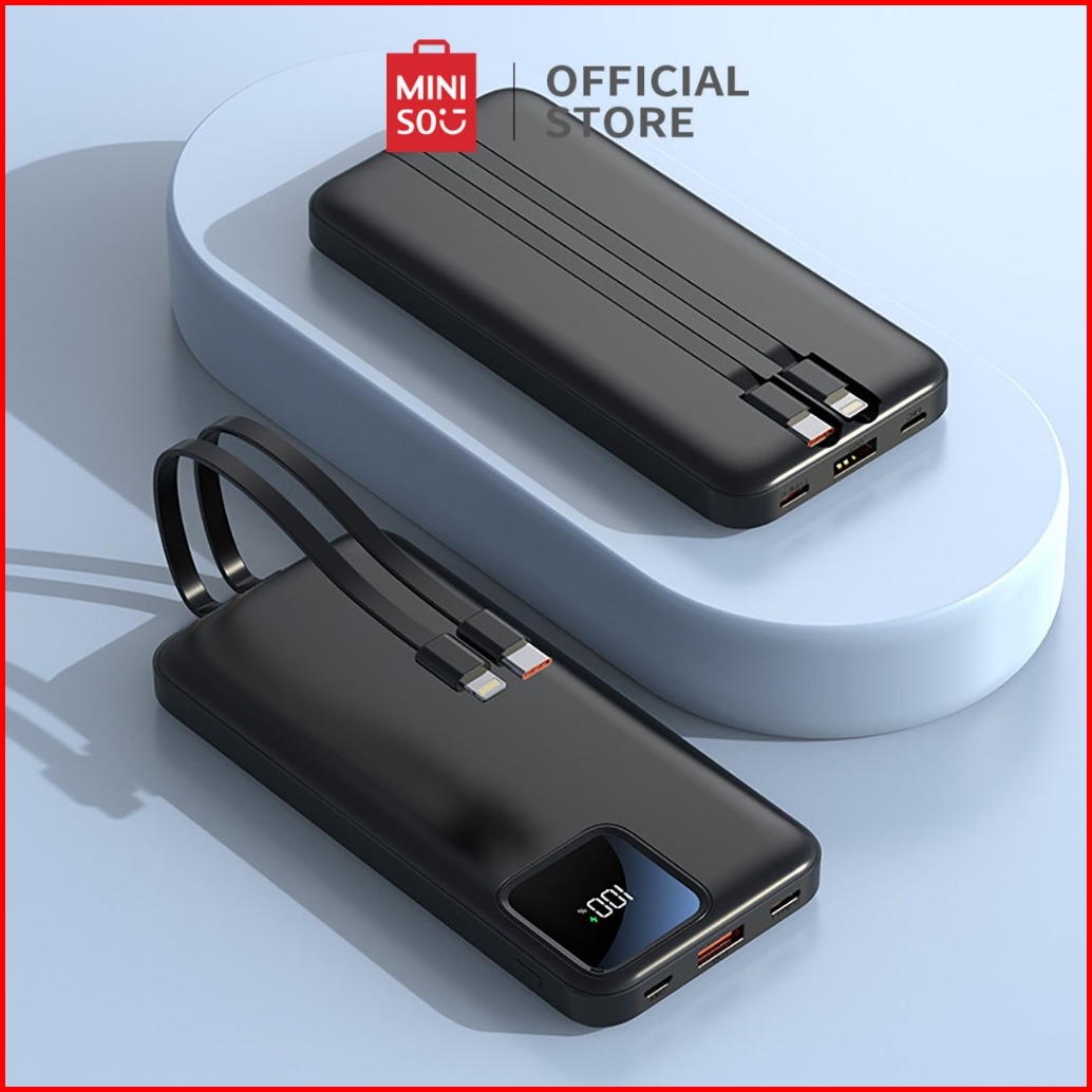 Miniso Powerbank 20000mah Digital Display Power Bank With Cable Bank Daya Dengan Dua Kabel Pengisian Daya