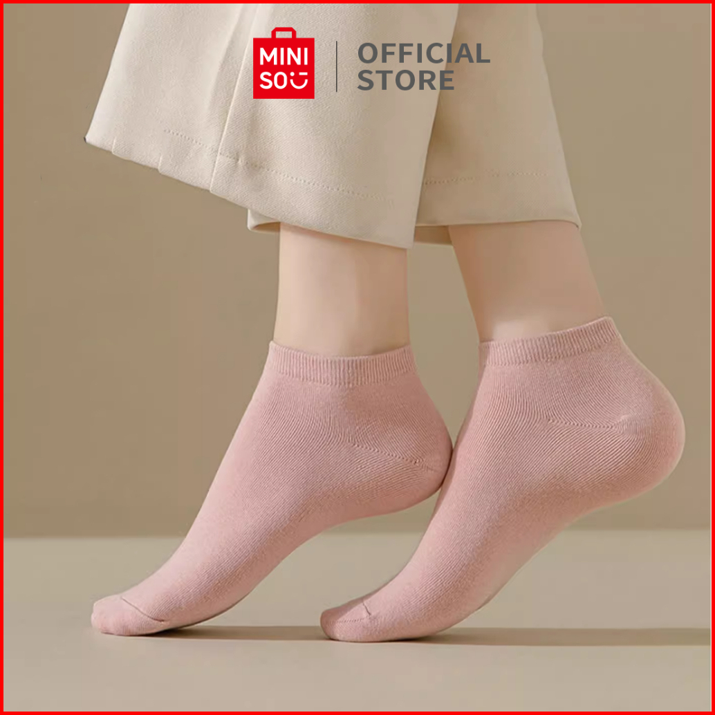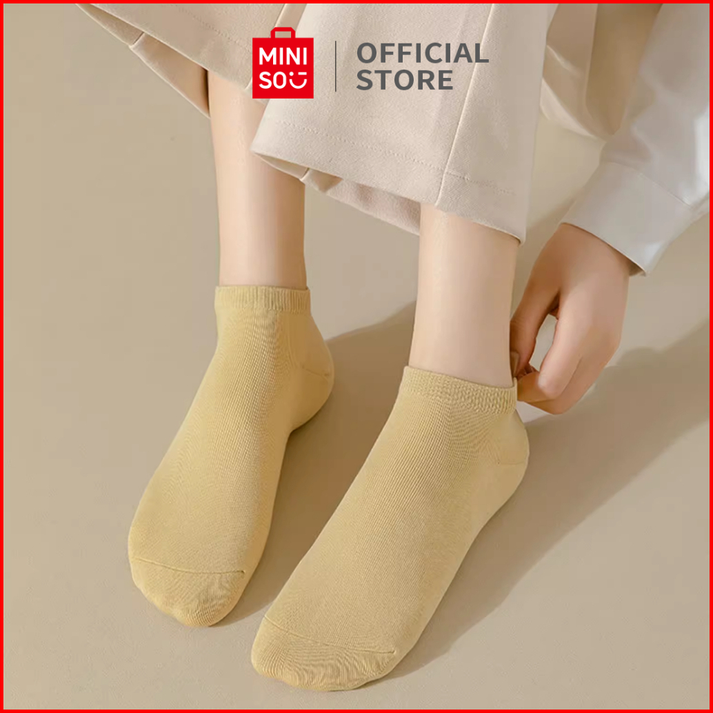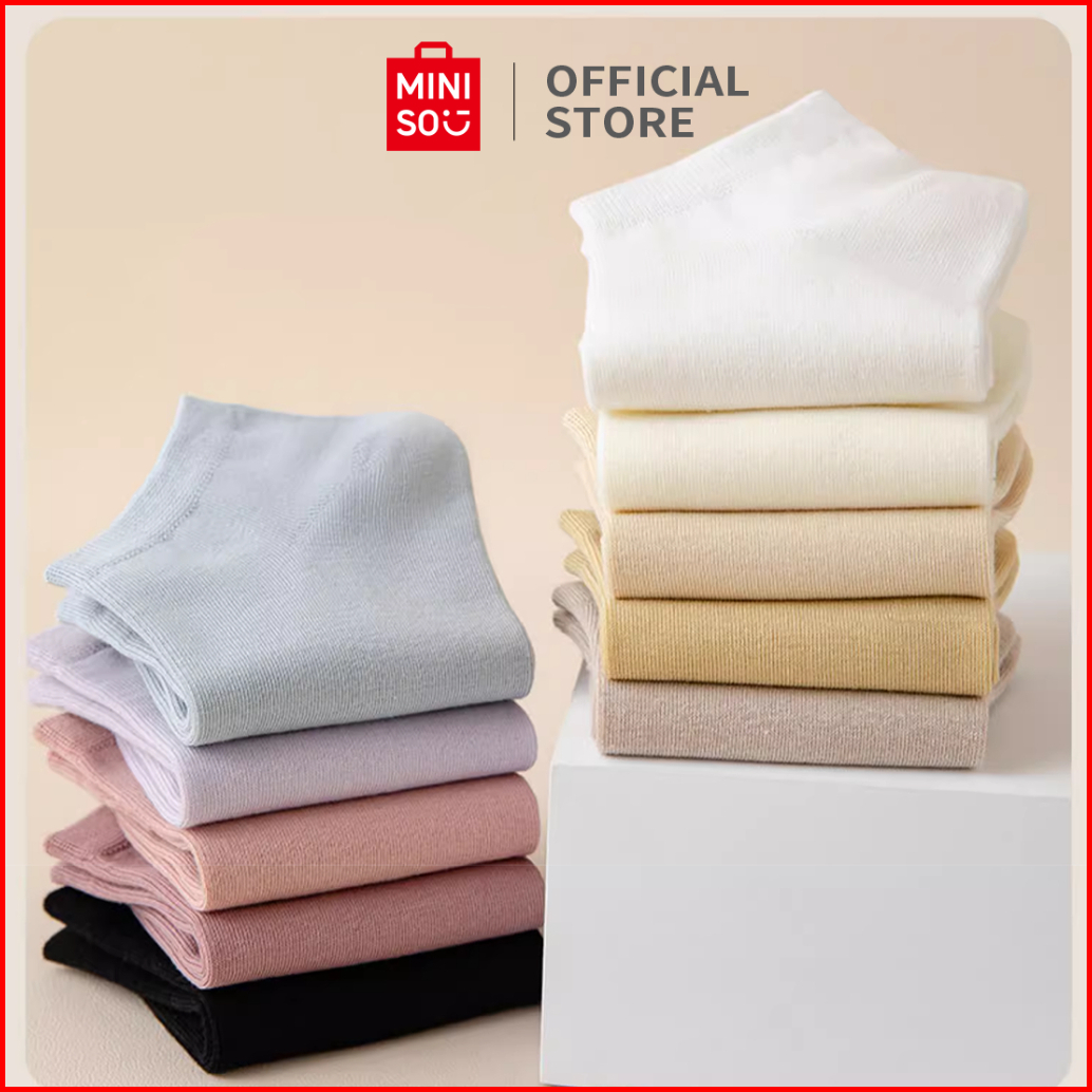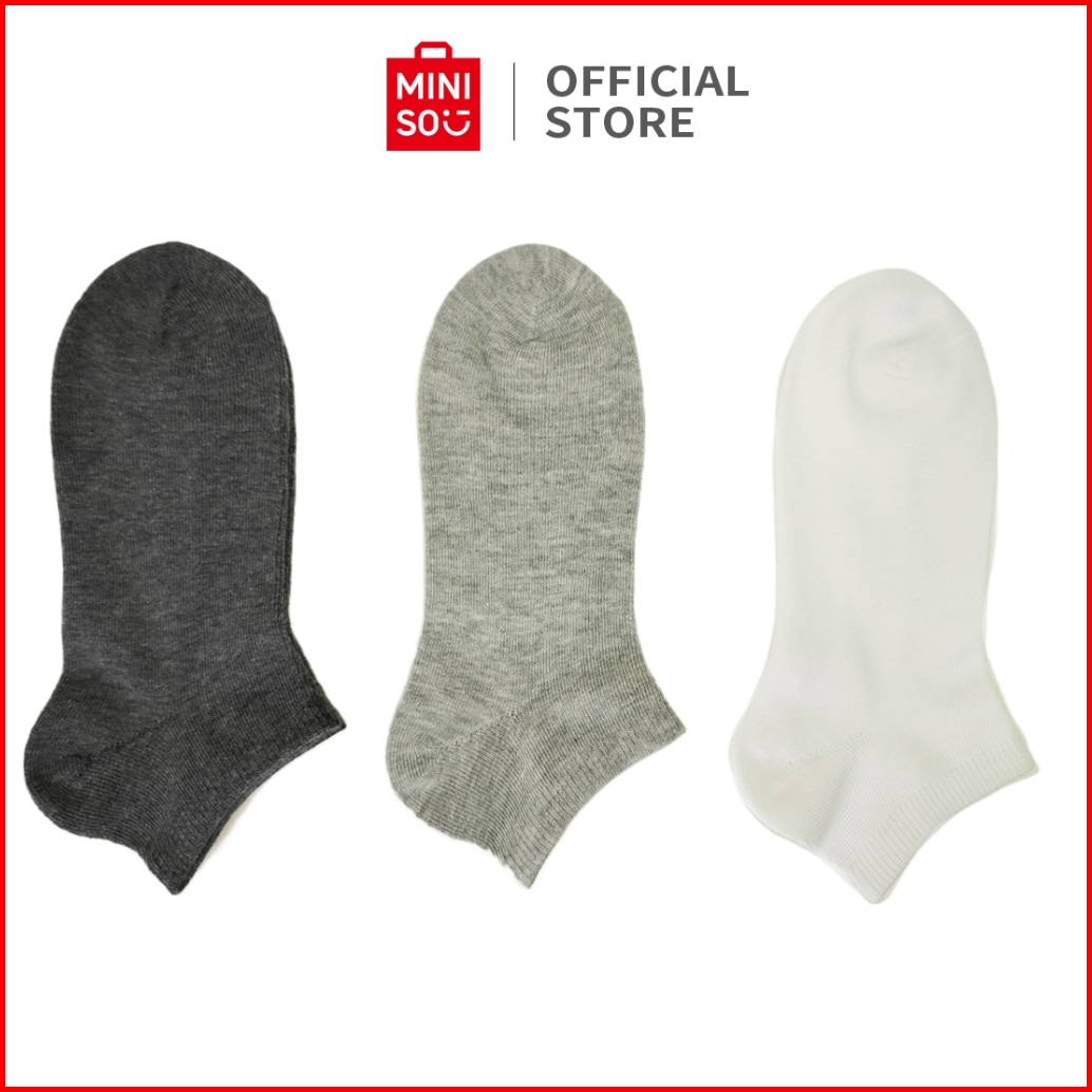 Miniso Kaos Kaki Pendek Wanita Women Socks 3 Pasang Solid Polos Putih Ankle