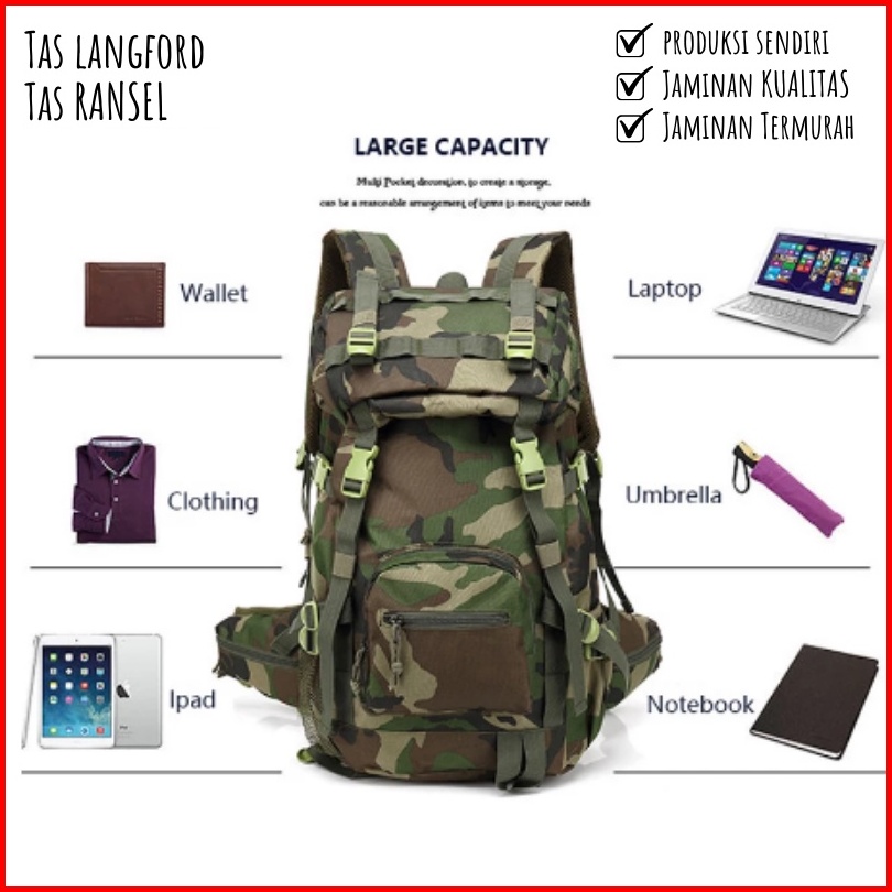 Tas Ransel Gunung Militer Army Jumbo Big Size Camping Mudik Backpack Punggung Bahu Model Import