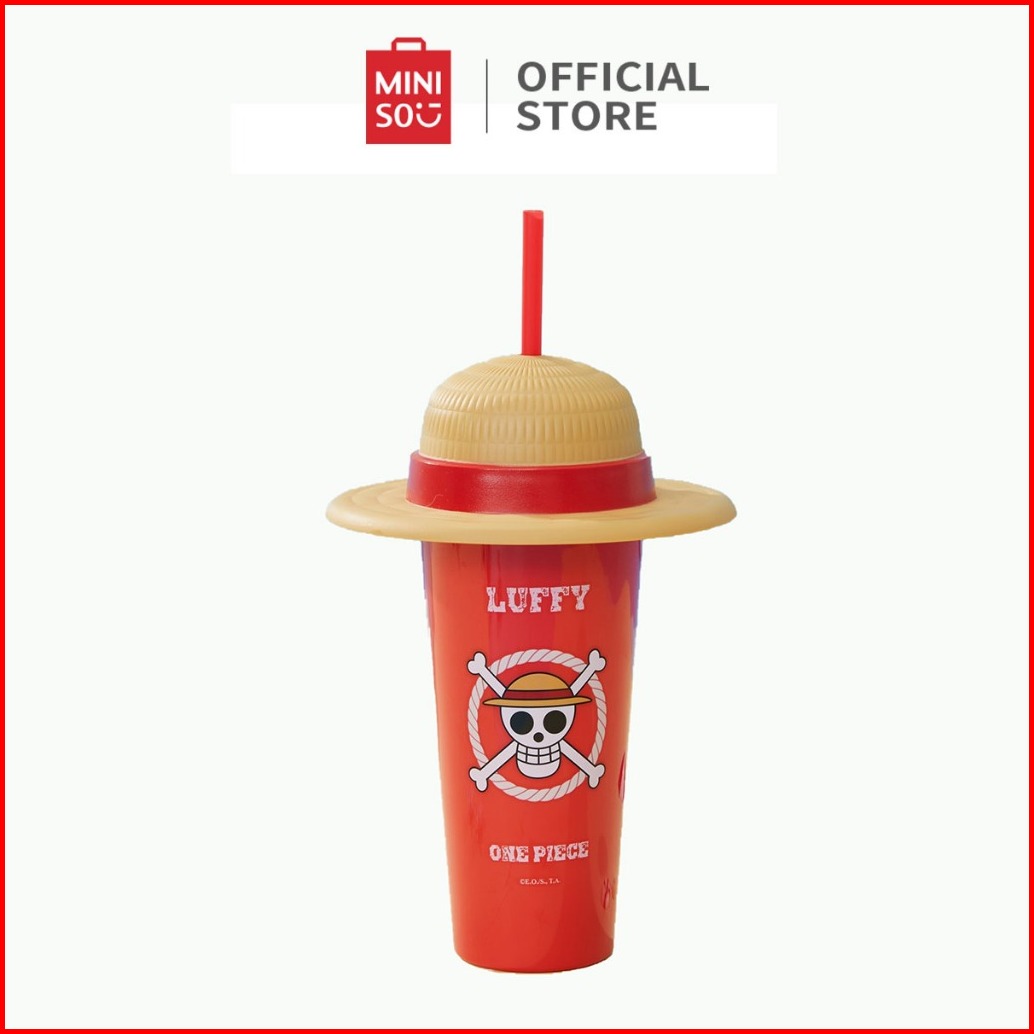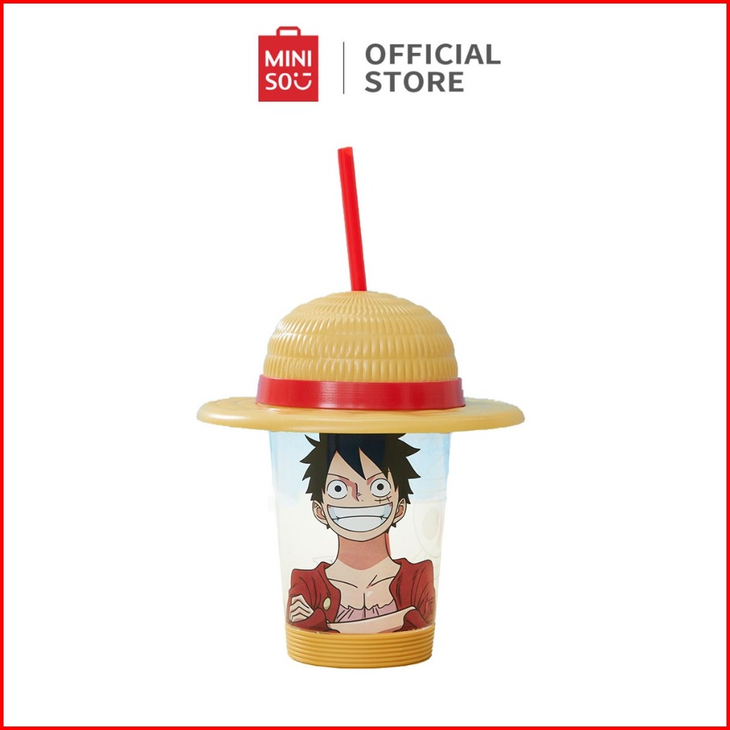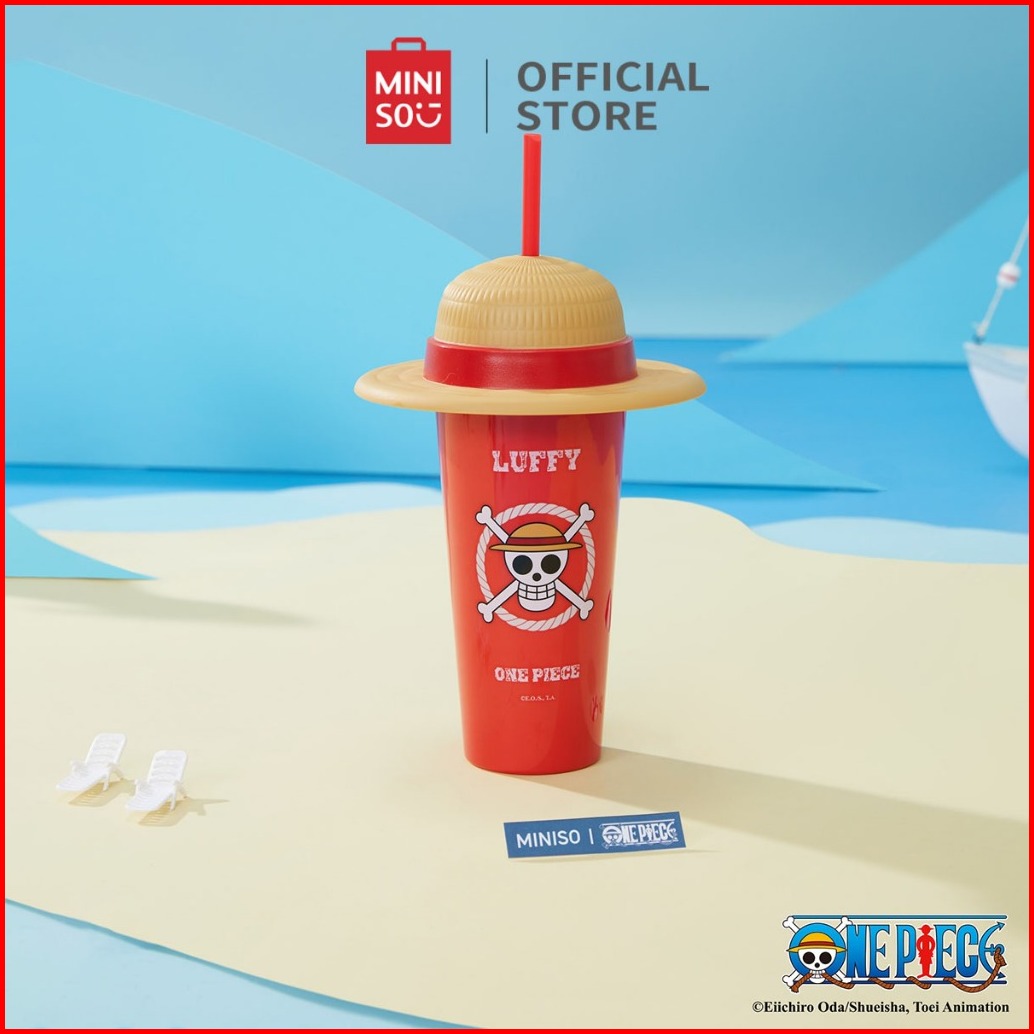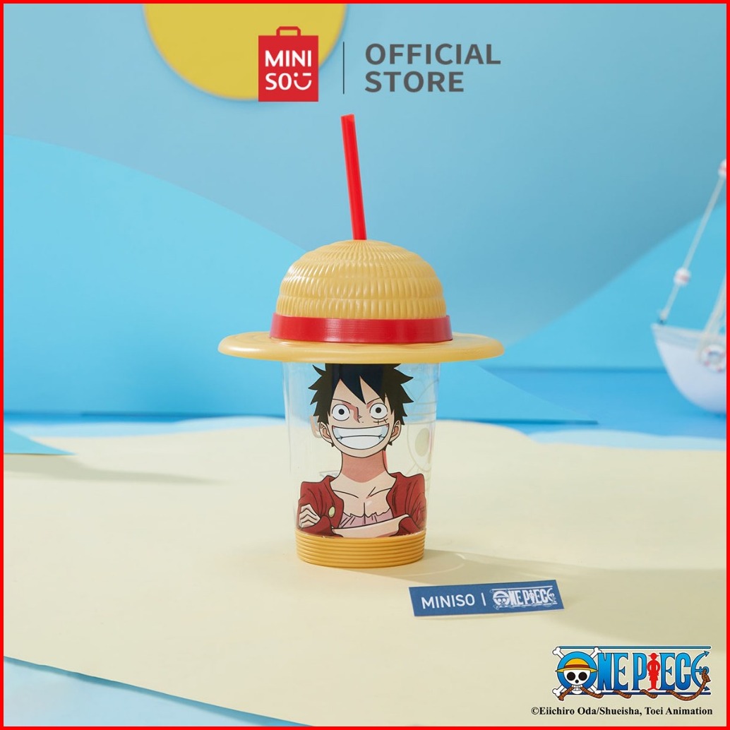 Miniso X One Piece Classic Collection Cangkir Minum Desktop Topi Gelas Plastik Dengan Sedotan Botol Minum Modis Berkapas