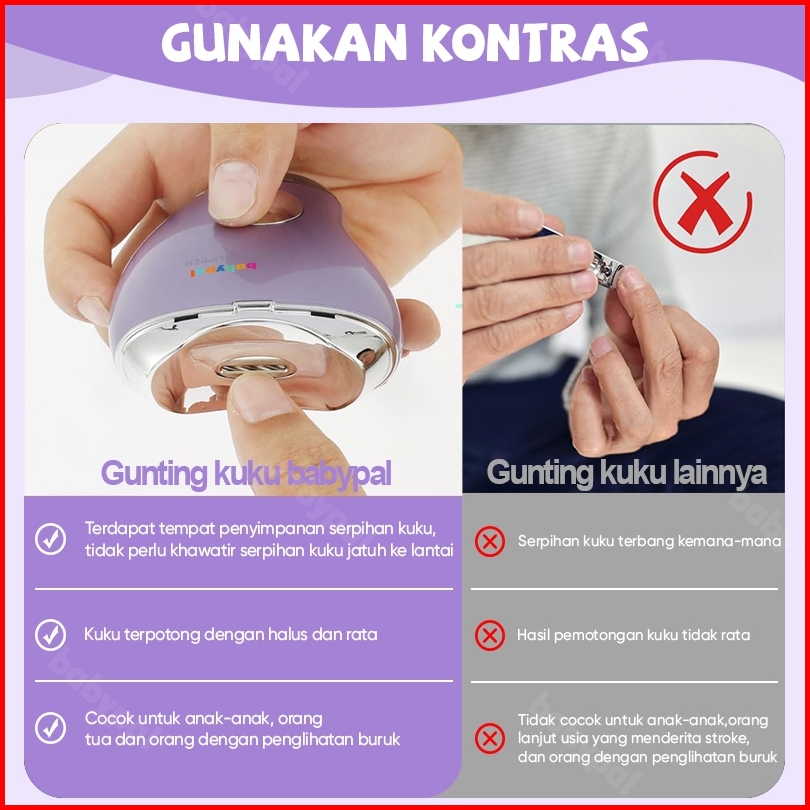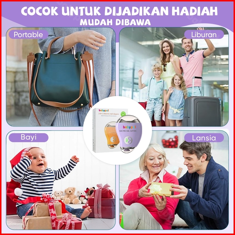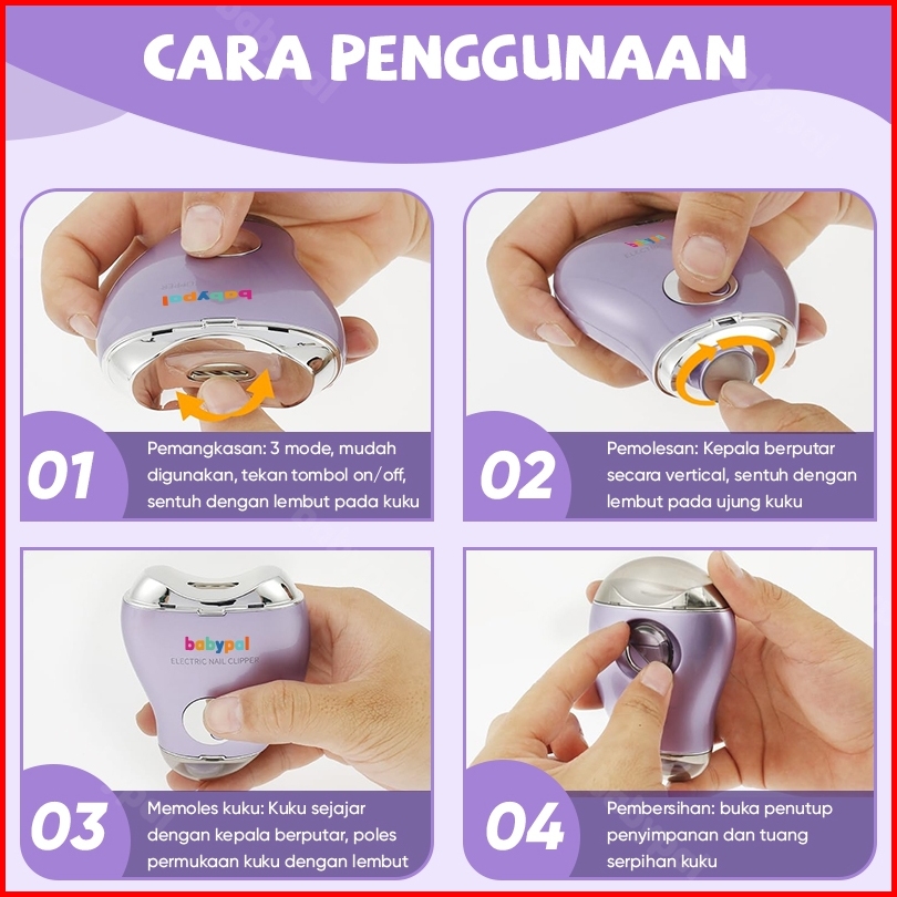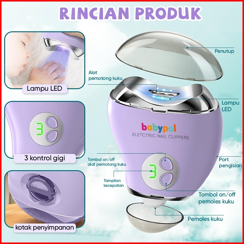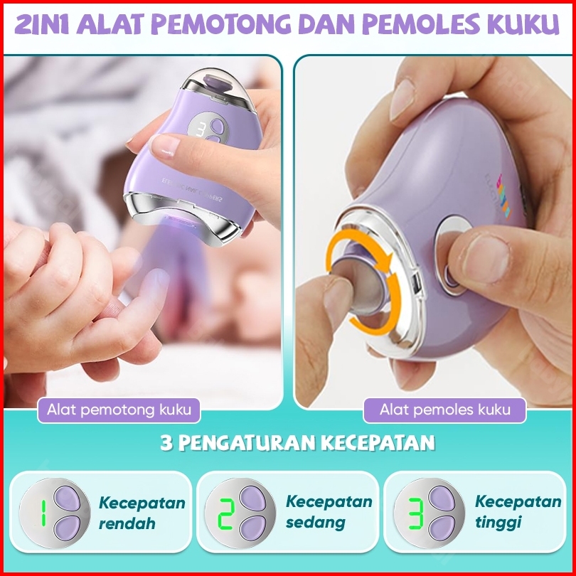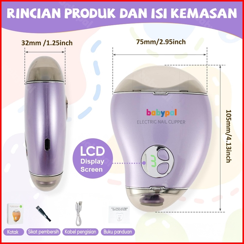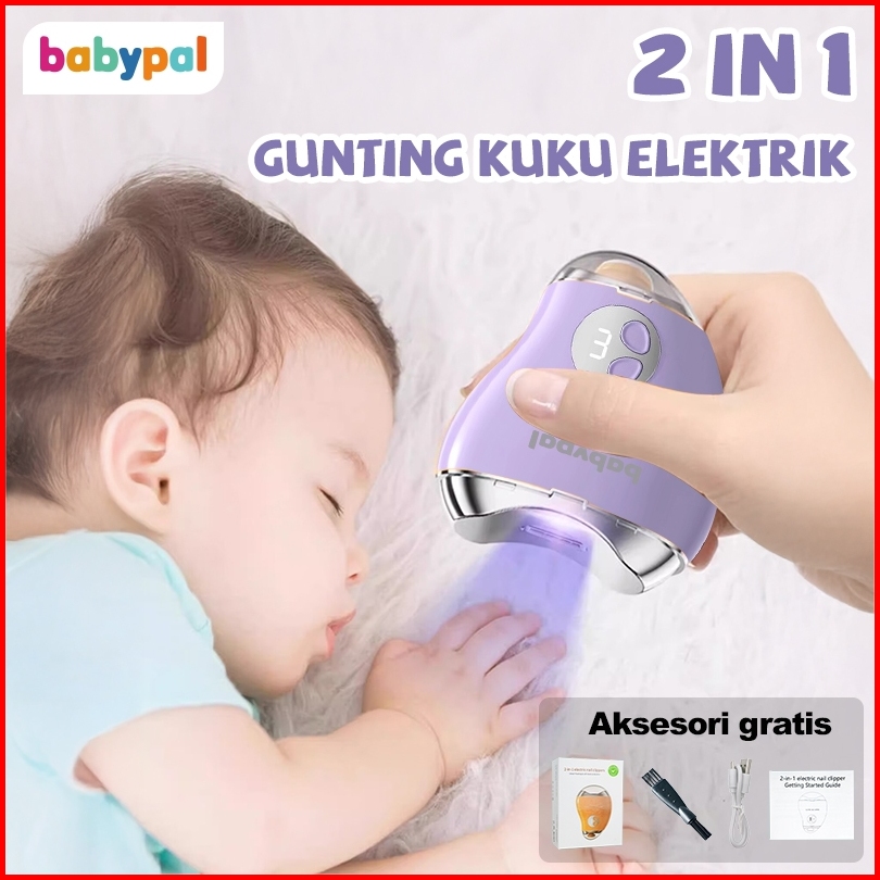 Babypal Gunting Kuku Bayi Elektrik Set 2in1 Pemangkasan Pemolesan Perlengkapan Bayi Fungsi Lampu Led Alat Pemotong Kuku