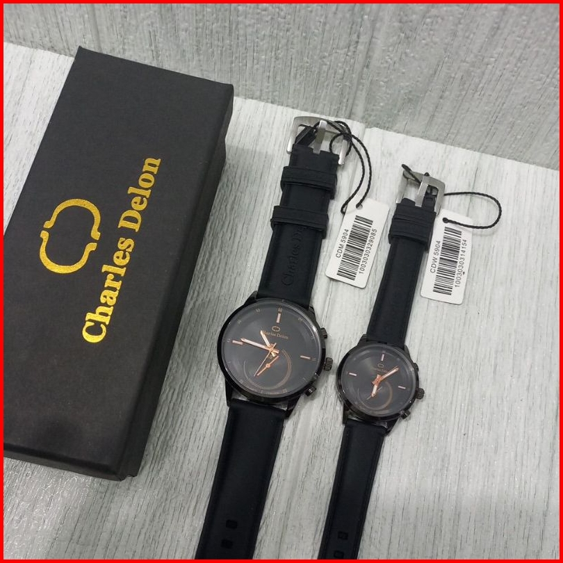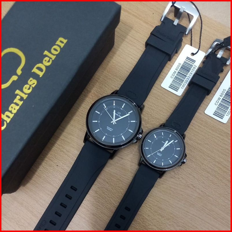 Jam Tangan Couple Original Charles Delon Bahan Rubber