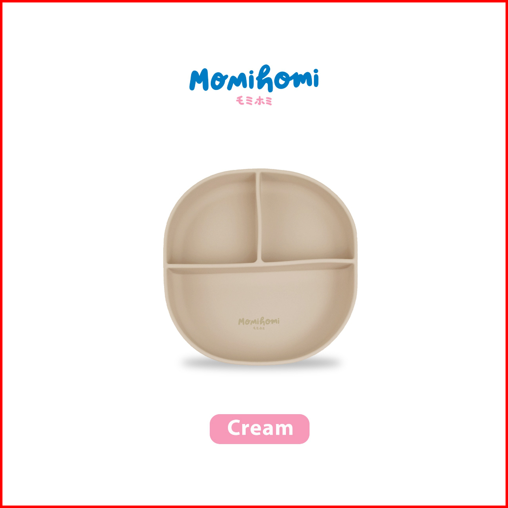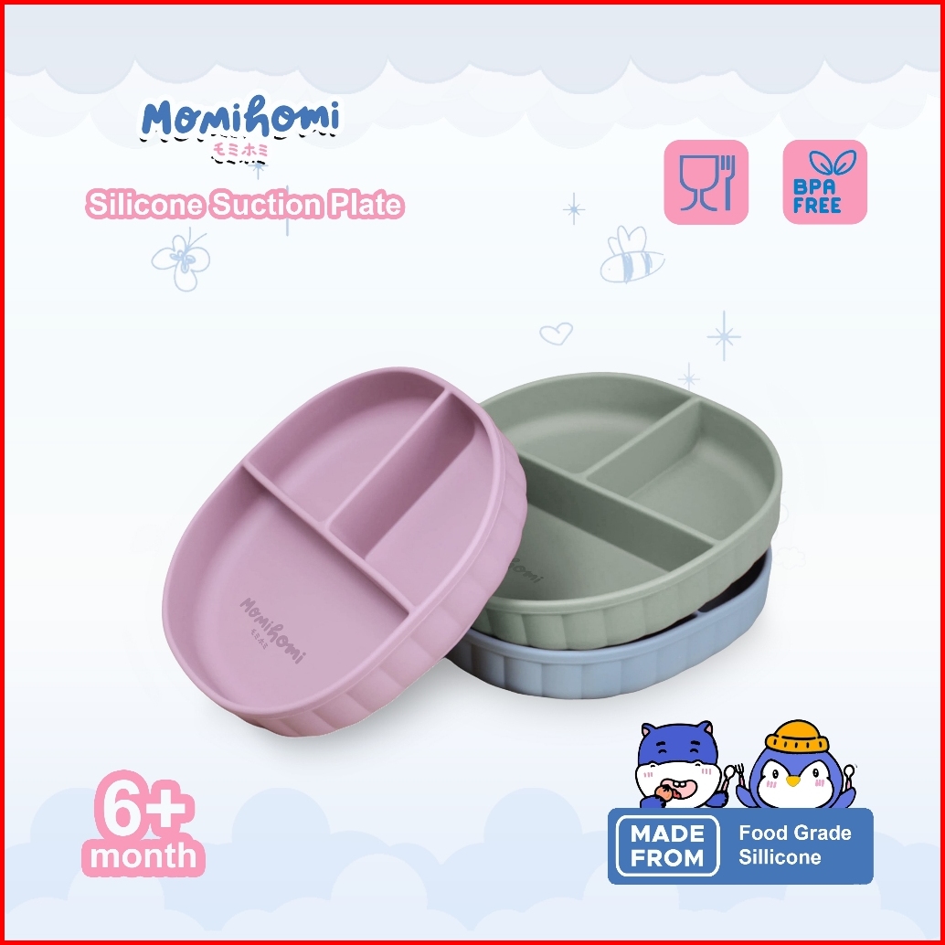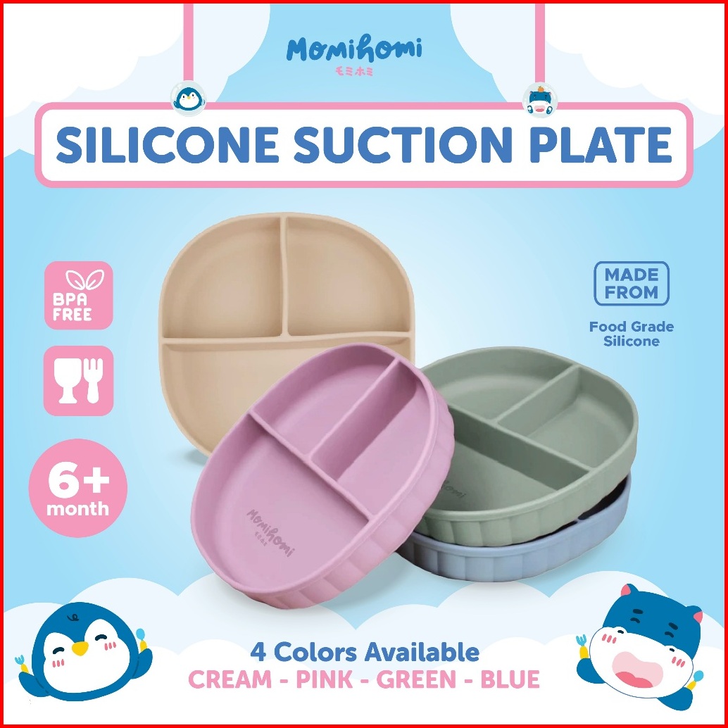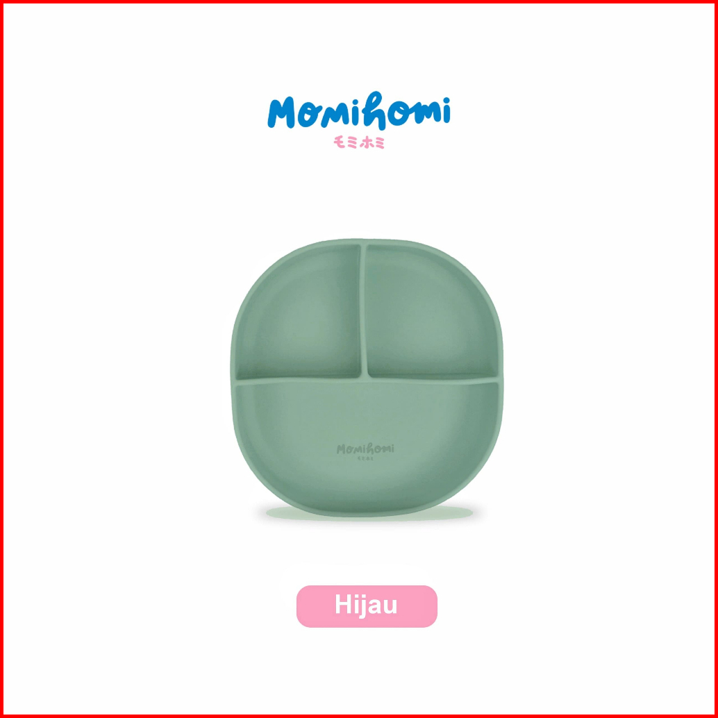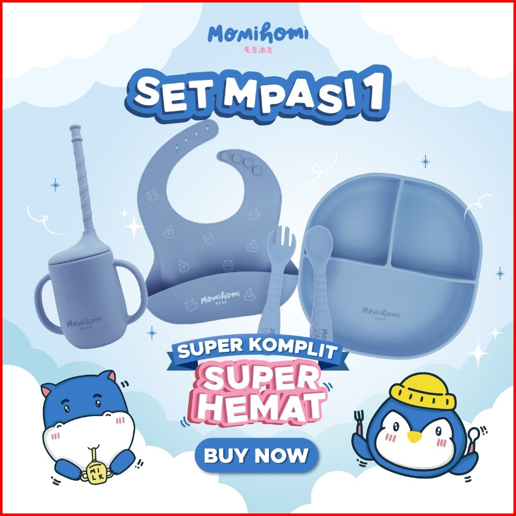Momi Homi Set Mpasi Celemek Piring Sendok Dan Gelas Silicone Baby Slabber Anti Slip Anti Tumpah Sekat 3 Peralatan Perlen