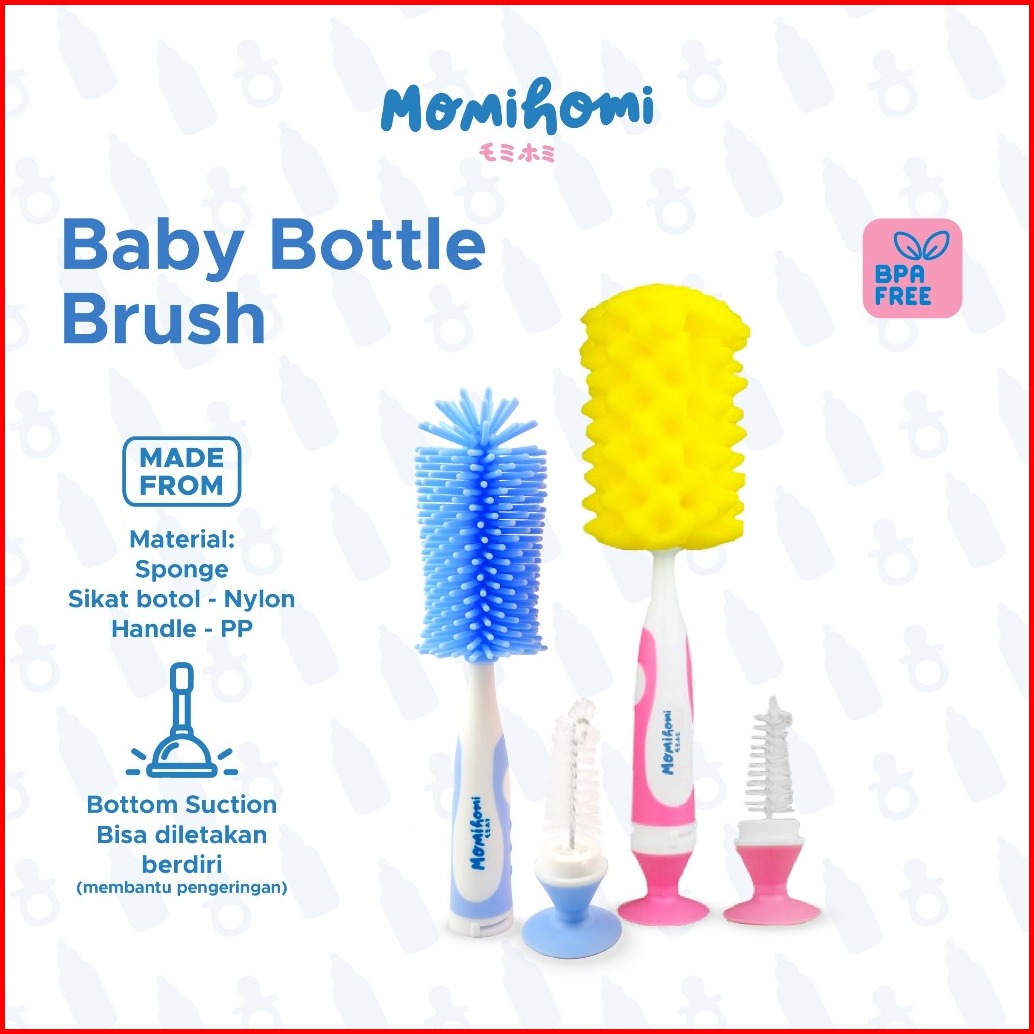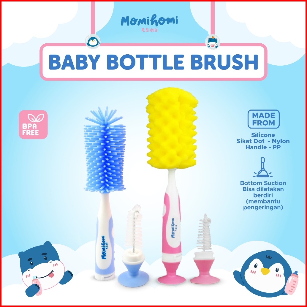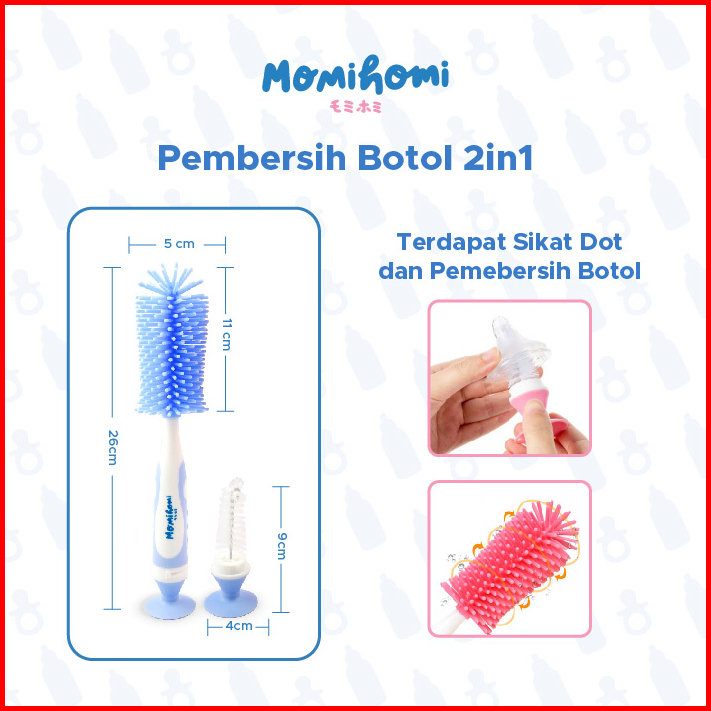 Momi Homi Silicone Baby Bottle Cleaner Brush 3001 Pembersih Botol Dot Bayi 2 In 1 Bahan Silikon Sikat Pembersih Untuk Bo