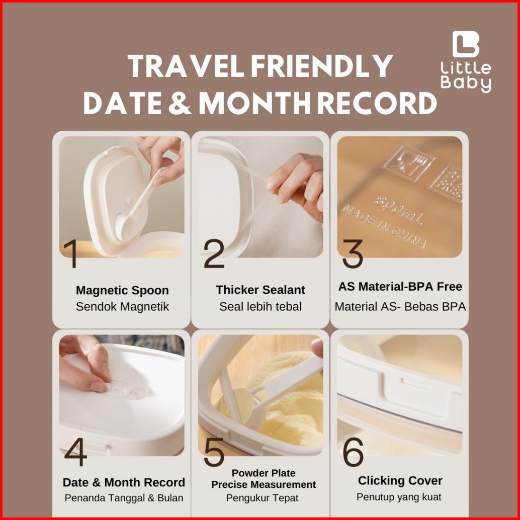Lb Little Baby Kontainer Susu Kedap Udara Dengan Tali Sendok Magnet 800ml-airtight Container Atc324