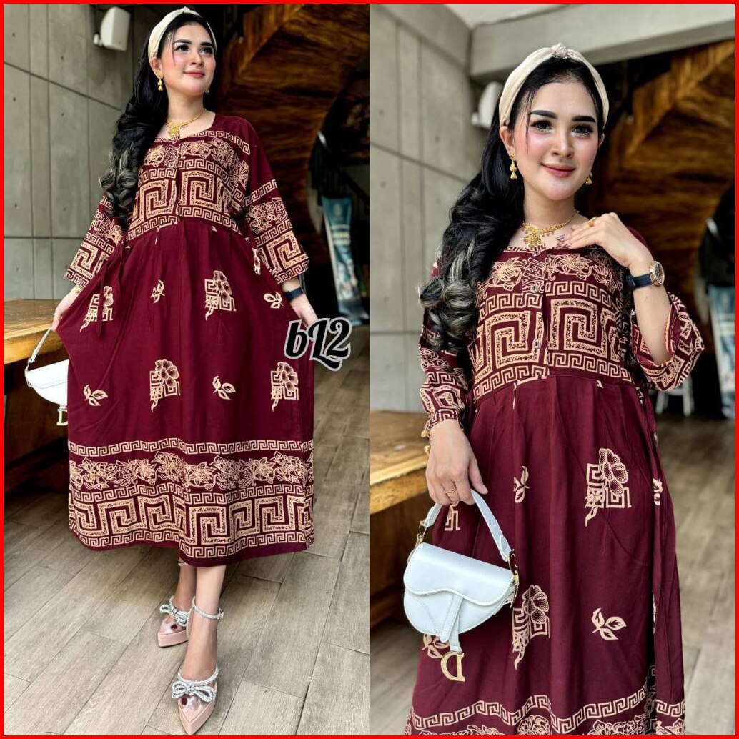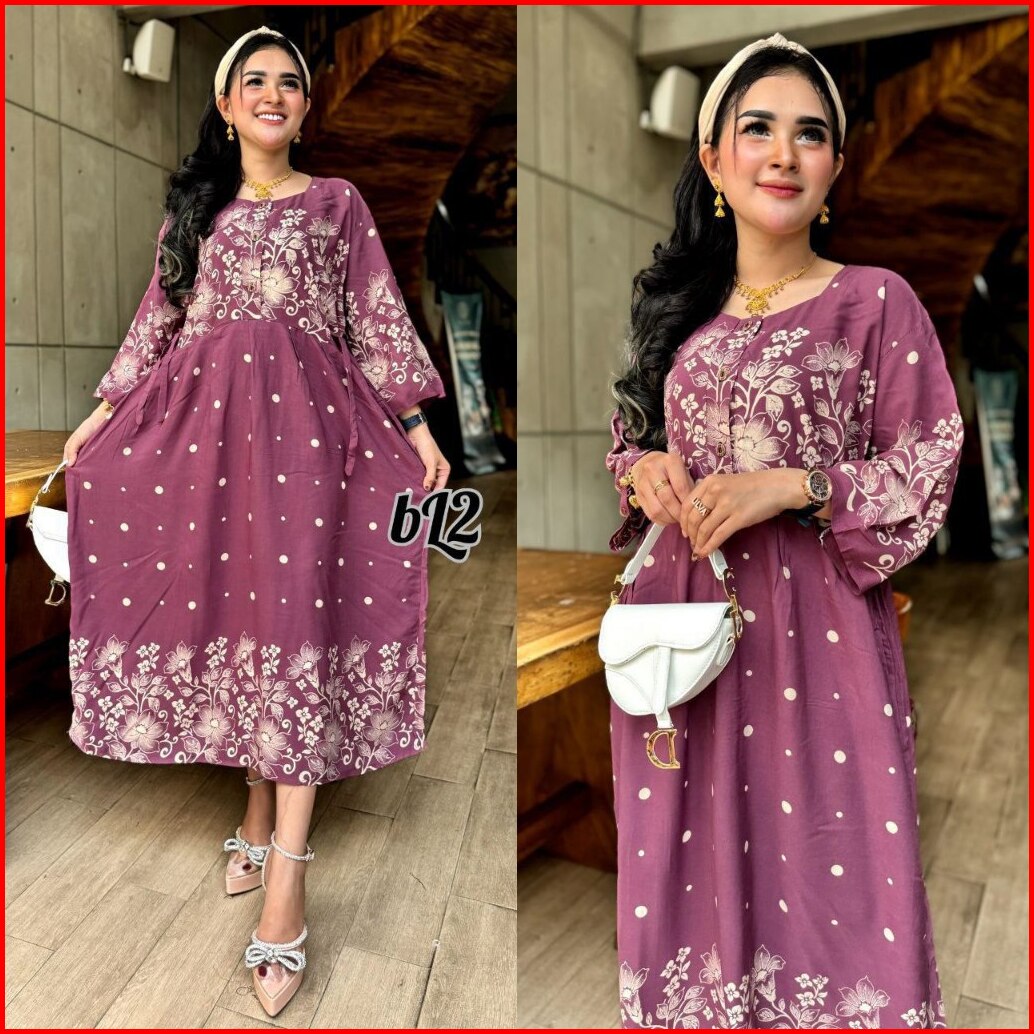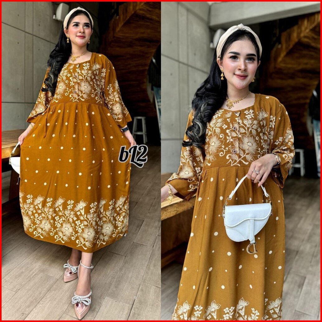 Dress Chibi Jumbo 3 4 Rayon Tebal Adem Busui Kancing Tali Samping