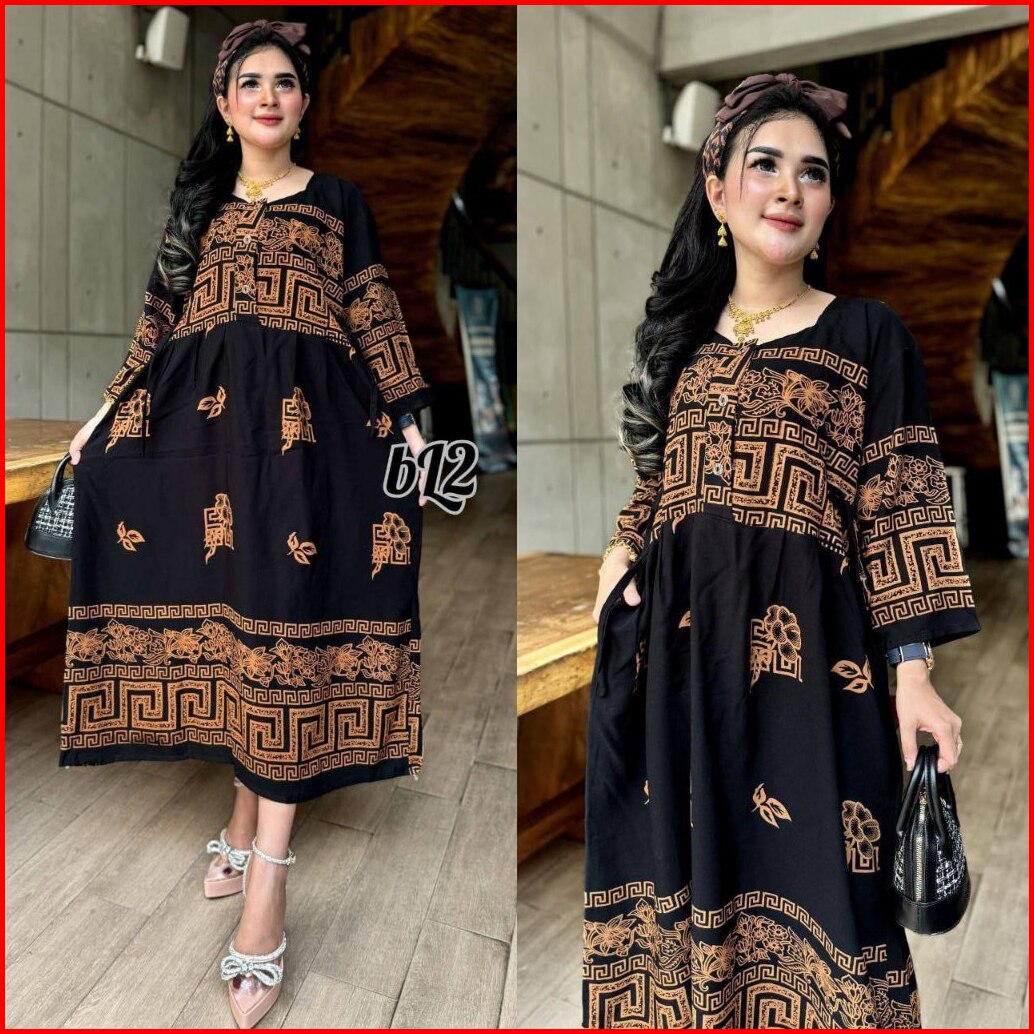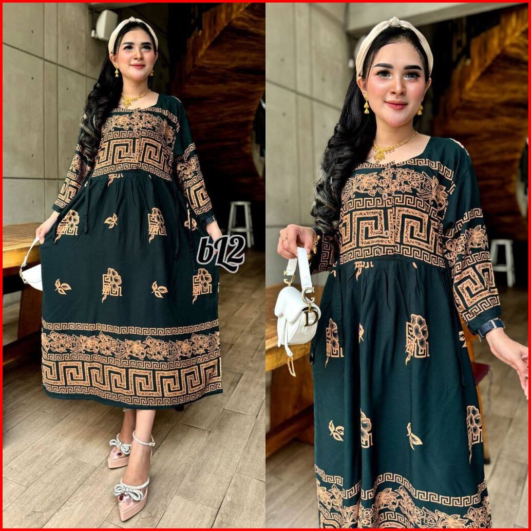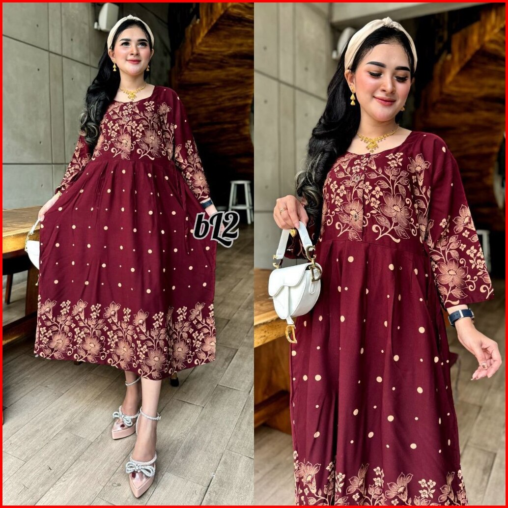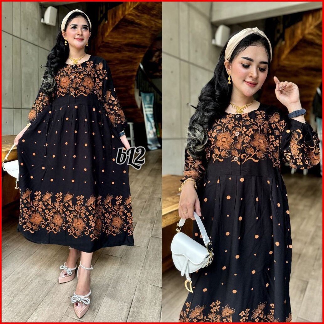 Dress Chibi Jumbo 3 4 Rayon Tebal Adem Busui Kancing Tali Samping
