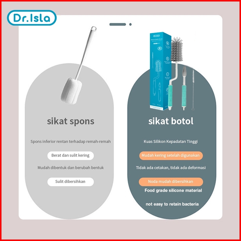 Dr.isla Sikat Botol Susu Bayi By17 Pembersih Dot Botol Bayi 1 Set 3pcs Sikat Pembersih Perlengkapan Bayi