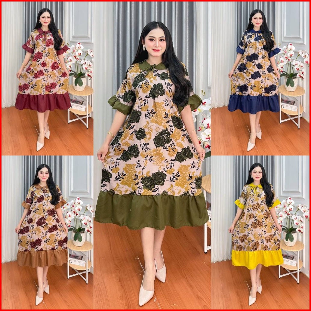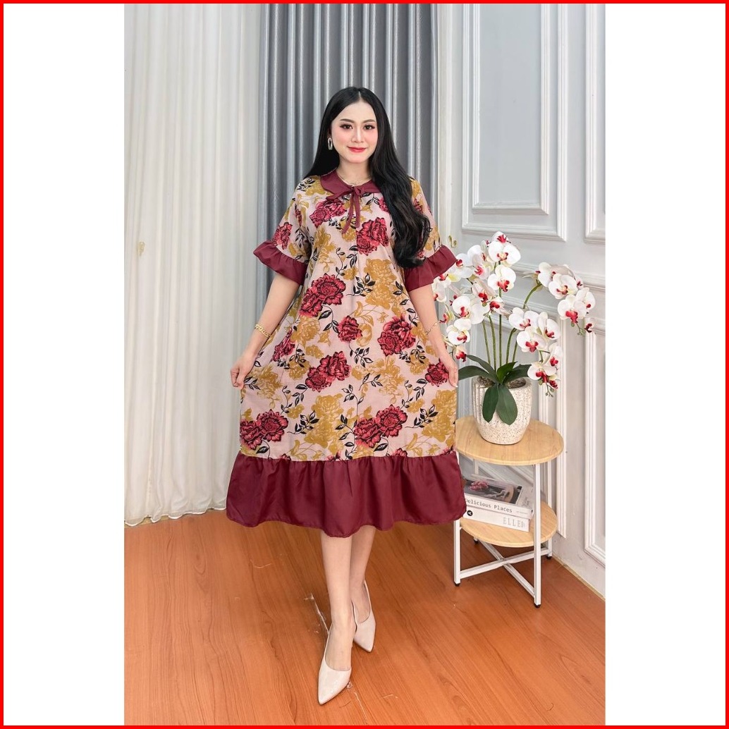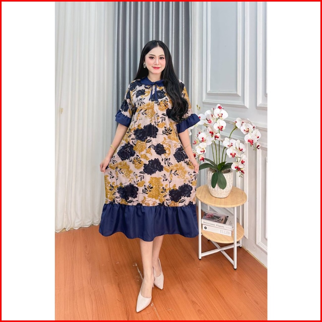 Daster Jumbo Sopal Ld 120 Cm Resleting Depan Kekinian Busui Bumil Bunga Caroline Persiy Kerah Tali Bahan Rayon Premium