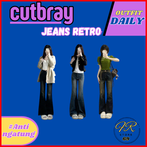 Highwaist Cutbray Jeans Retro Wanita-celana Jeans Cutbray Wanita Model Retro Korea Terbaru